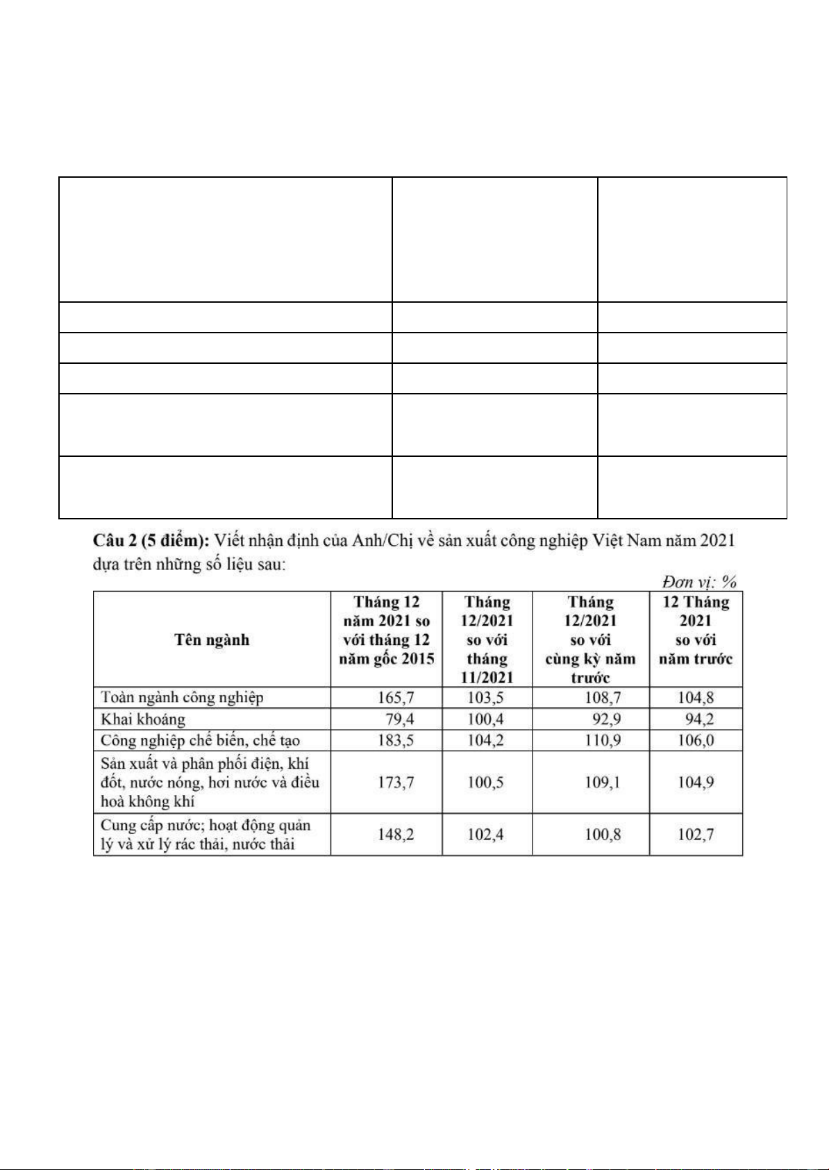 Câu 2: Khối ngành công nghiệp có vai trò quan trọng đối với nền kinh tế Việt Nam trong