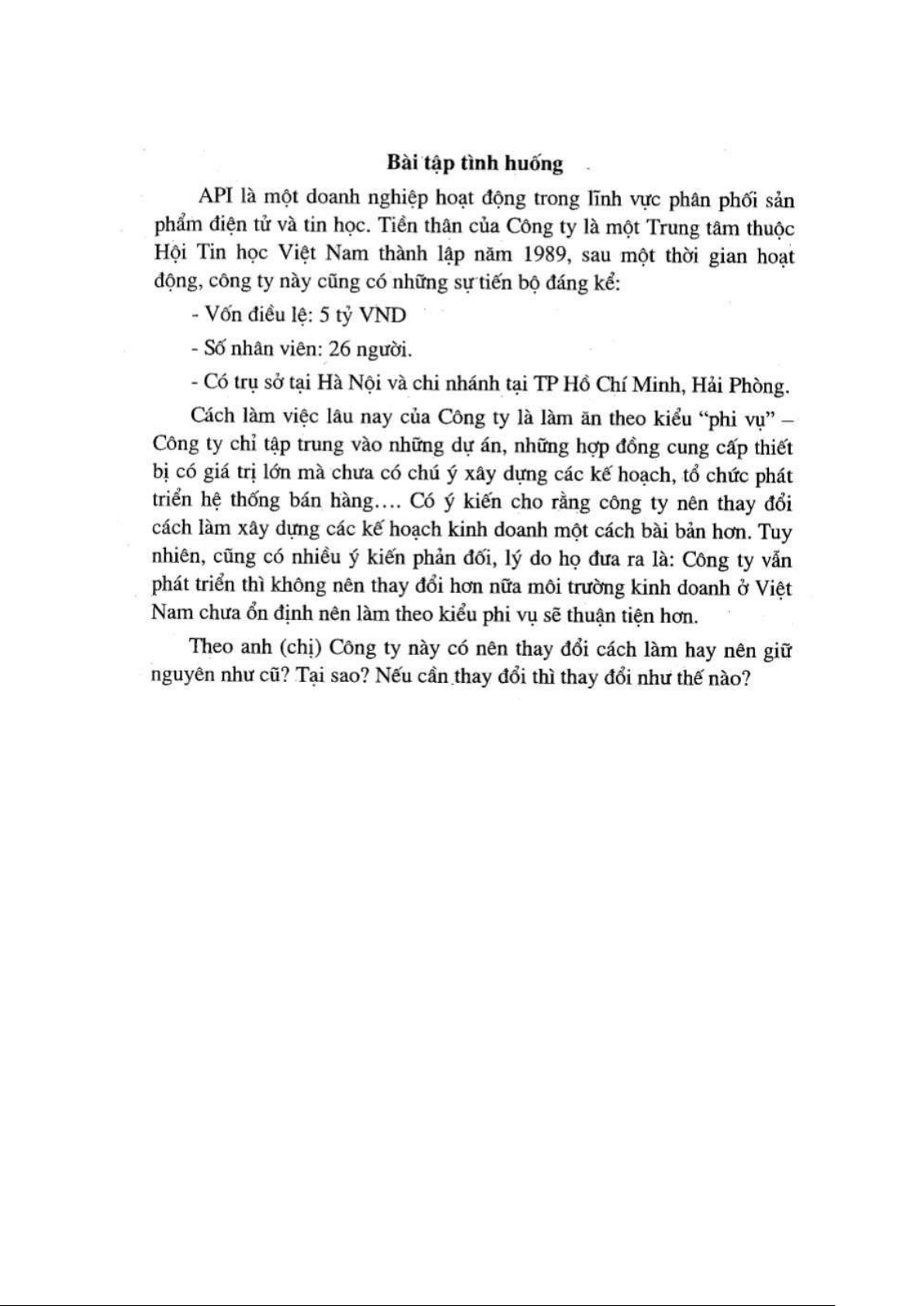 hiện tại của công ty API và quyết ịnh liệu công ty này có nên thay ổi cách tiếp cận kinh doanh