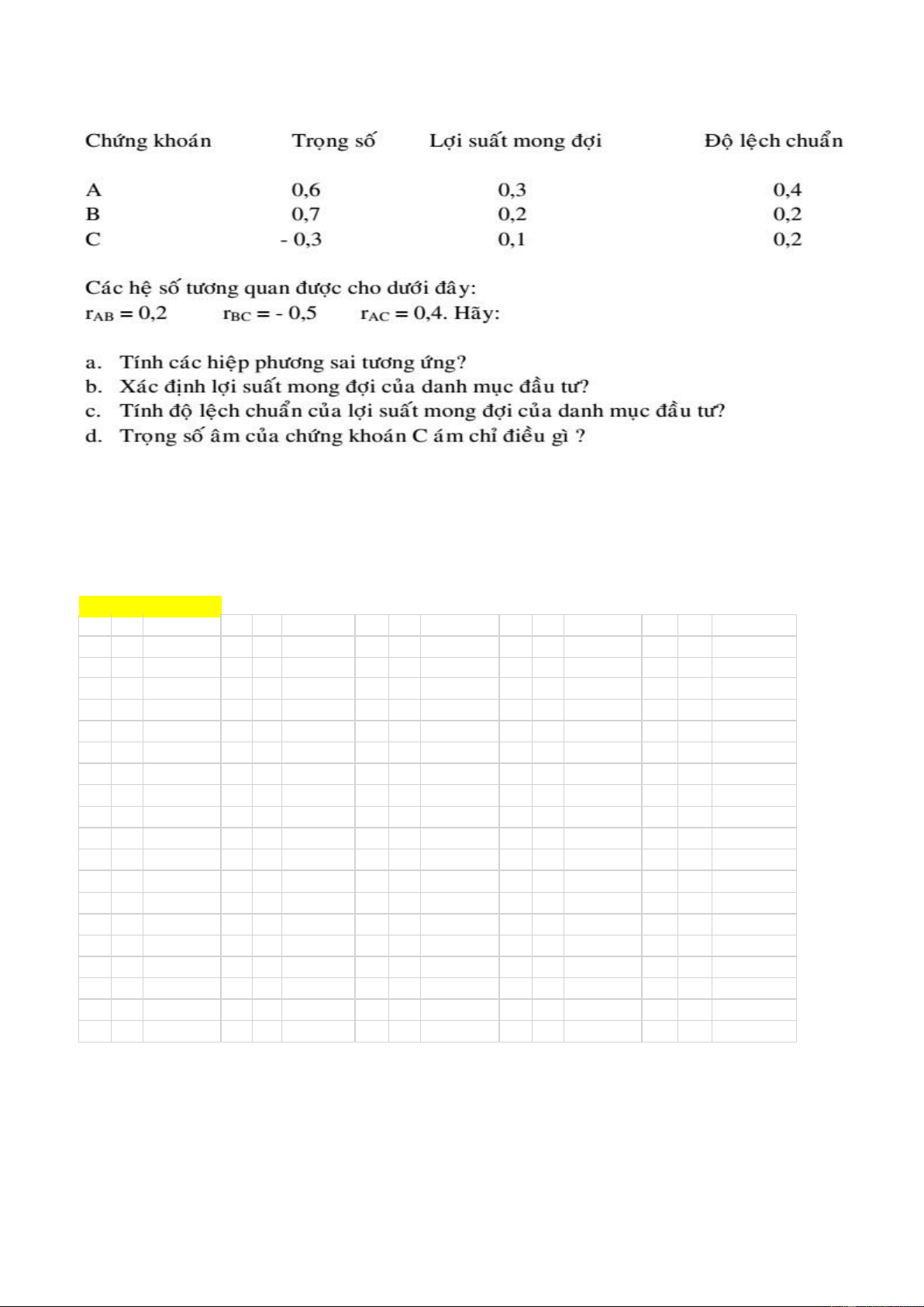 Biết rằng hệ số tương quan giữa 2 mã CK trên = 0 Bài 11: Bài 12: 6 Bài 13: Một DMĐT gồm 3 CK sau: Bài 14: