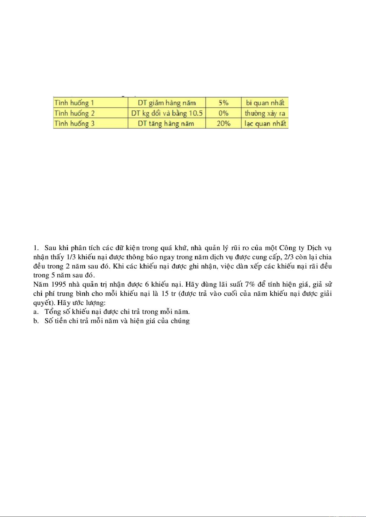 BÀI TẬP MÔN QUẢN TRỊ RỦI RO Bài 1: