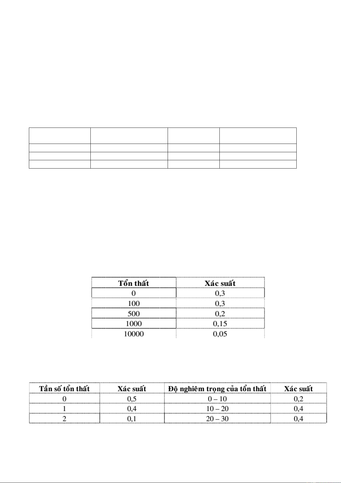 phối của số tổn thất, bảng phân phối của chi phí tổn thất thành 4 lớp (tùy theo sự phán đoán của bạn). Bài 30: