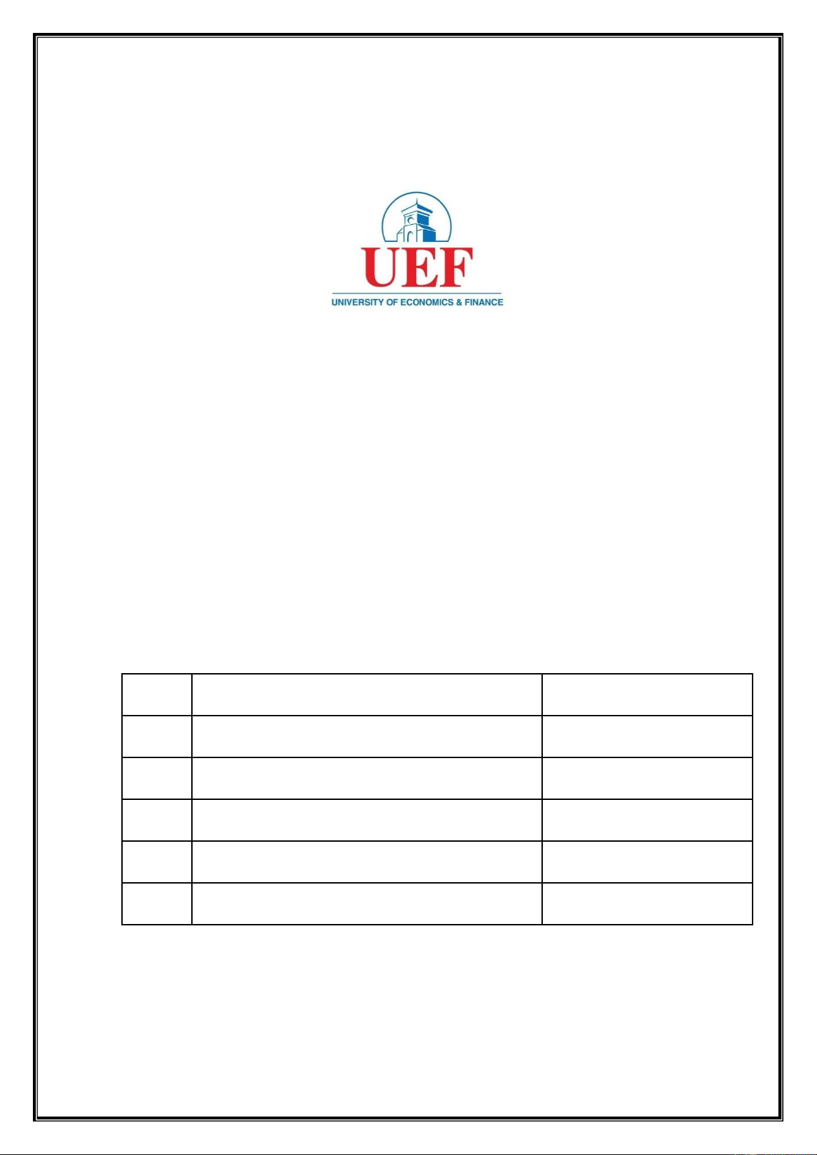 Mức độ thực hiện 1 Nguyễn Hà Khánh 225016164 100% 2 Đỗ Thị Mai 225019235 100% 3 Nguyễn Thảo Nguyên 225018722 100% 4 Nguyễn Hoàng Gia Phong 225980818 100% 5 Cao Thị Quỳnh 225980673 100% MỤC LỤC