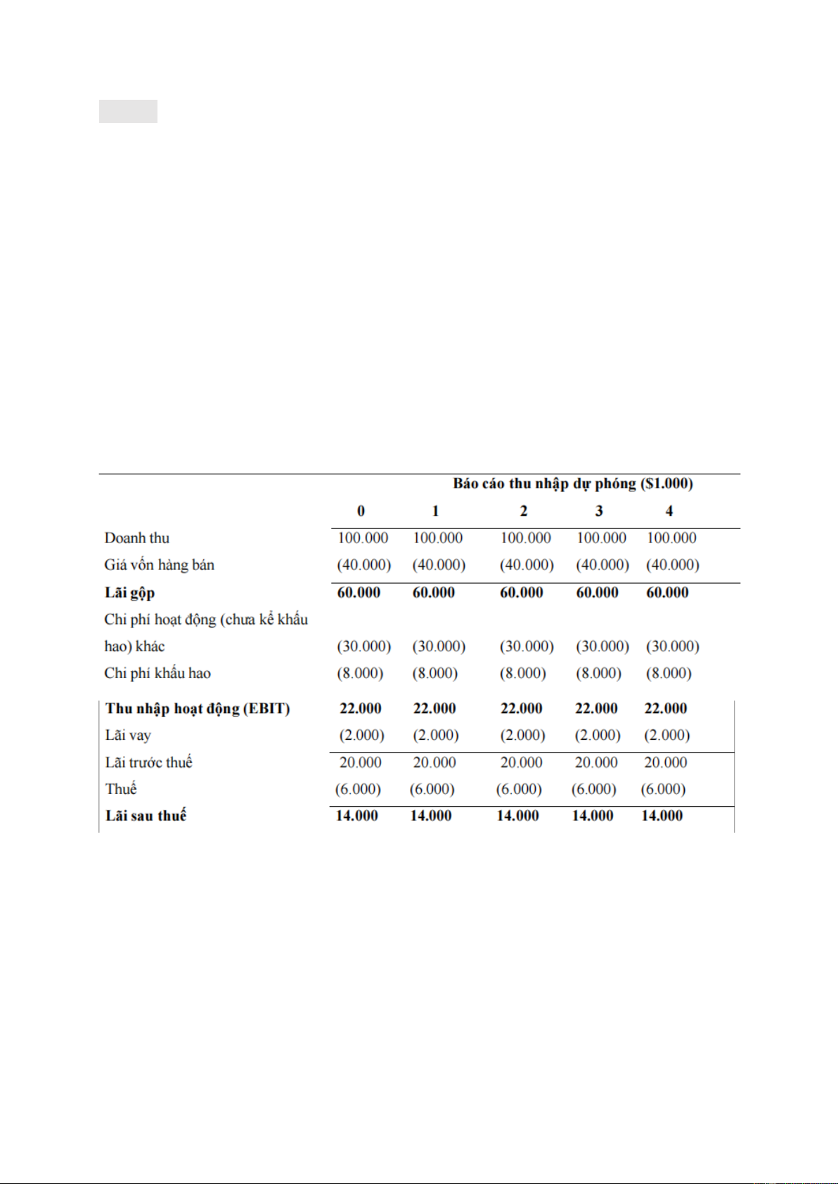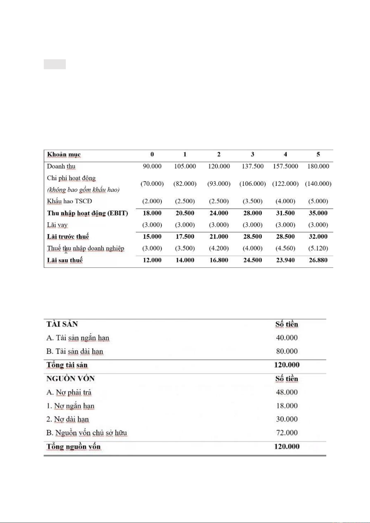gồm 20% nợ, 80% vốn chủ sở hữu. Thuế suất thuế thu nhập doanh nghiệp của cả