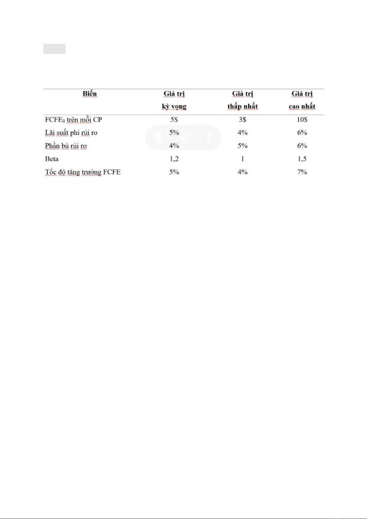 phụ thuộc nhiều vào FCFE, lãi suất phi rủi ro và beta. Do đó, nhà đầu tư cần chú