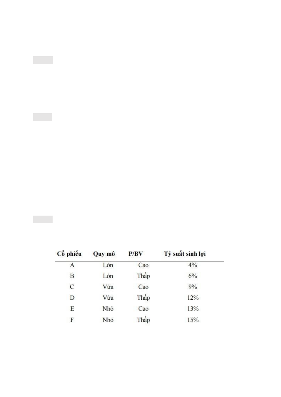 Câu 9: Dưới đây là thông tin về tỷ suất sinh lợi của các công ty có quy mô khác