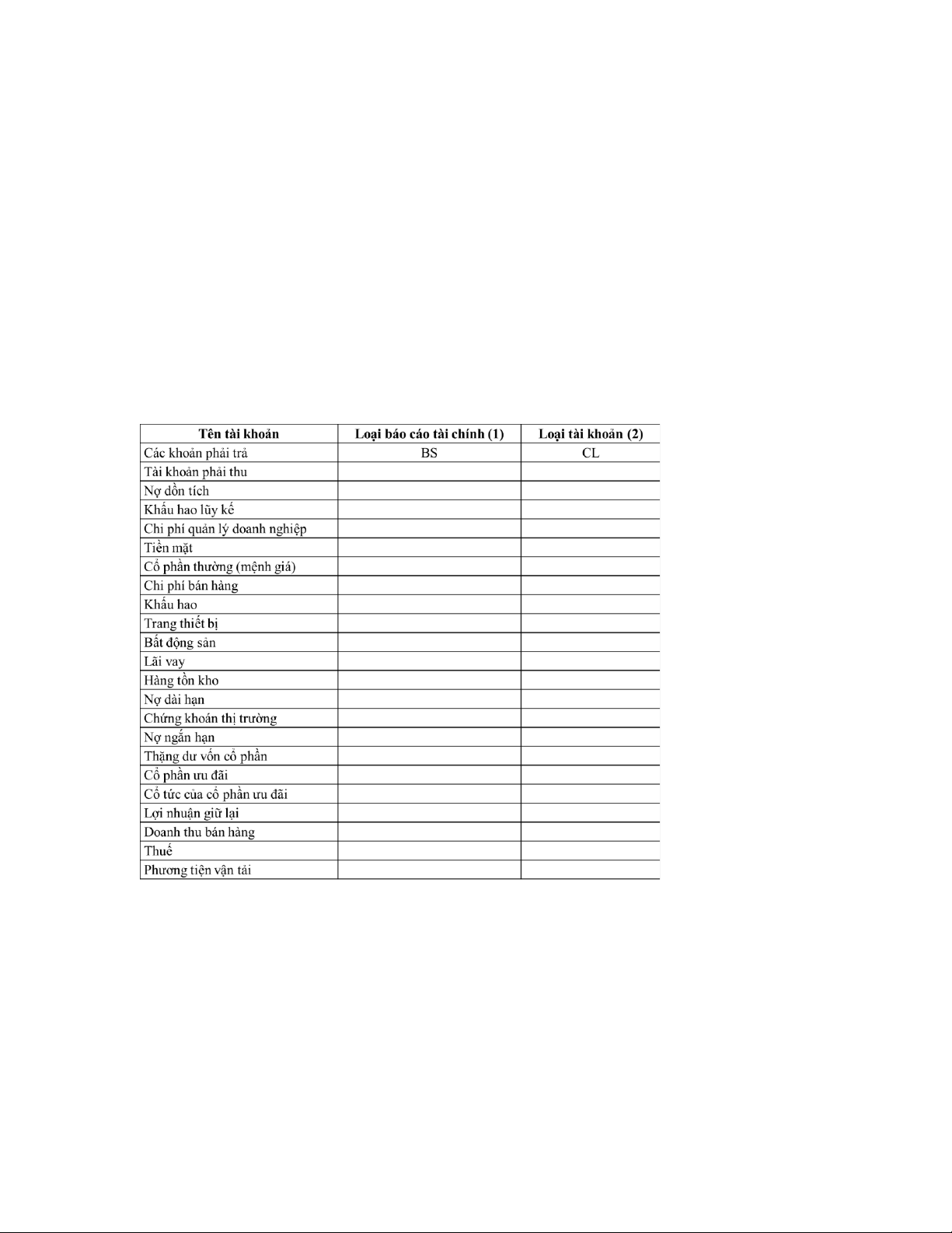 khoản của công ty BN. Giả sử kết quả sau khi tính toán được như sau: