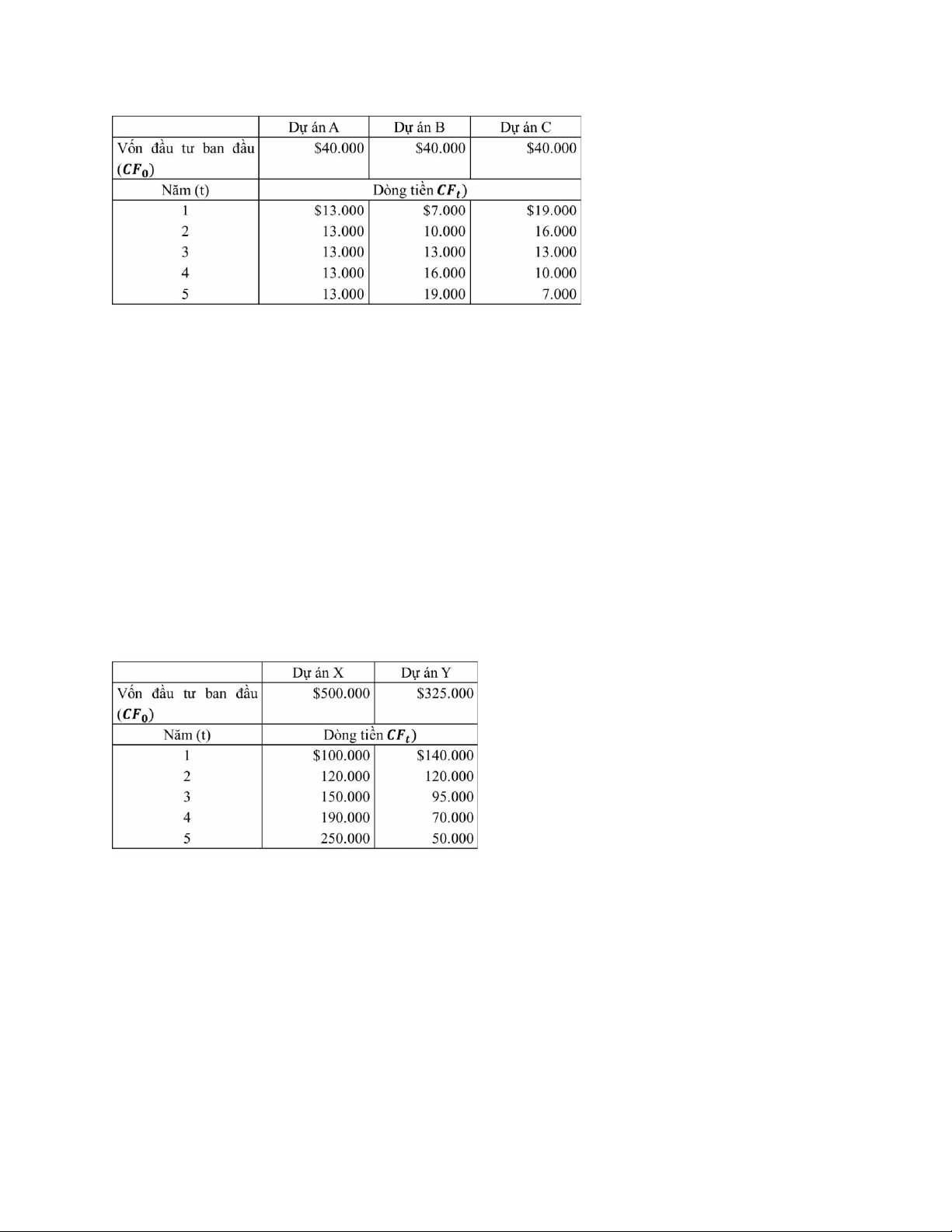 3. Công ty N có 3 dự án cần xem xét. Dòng tiền của mỗi dự án như trong bảng sau: