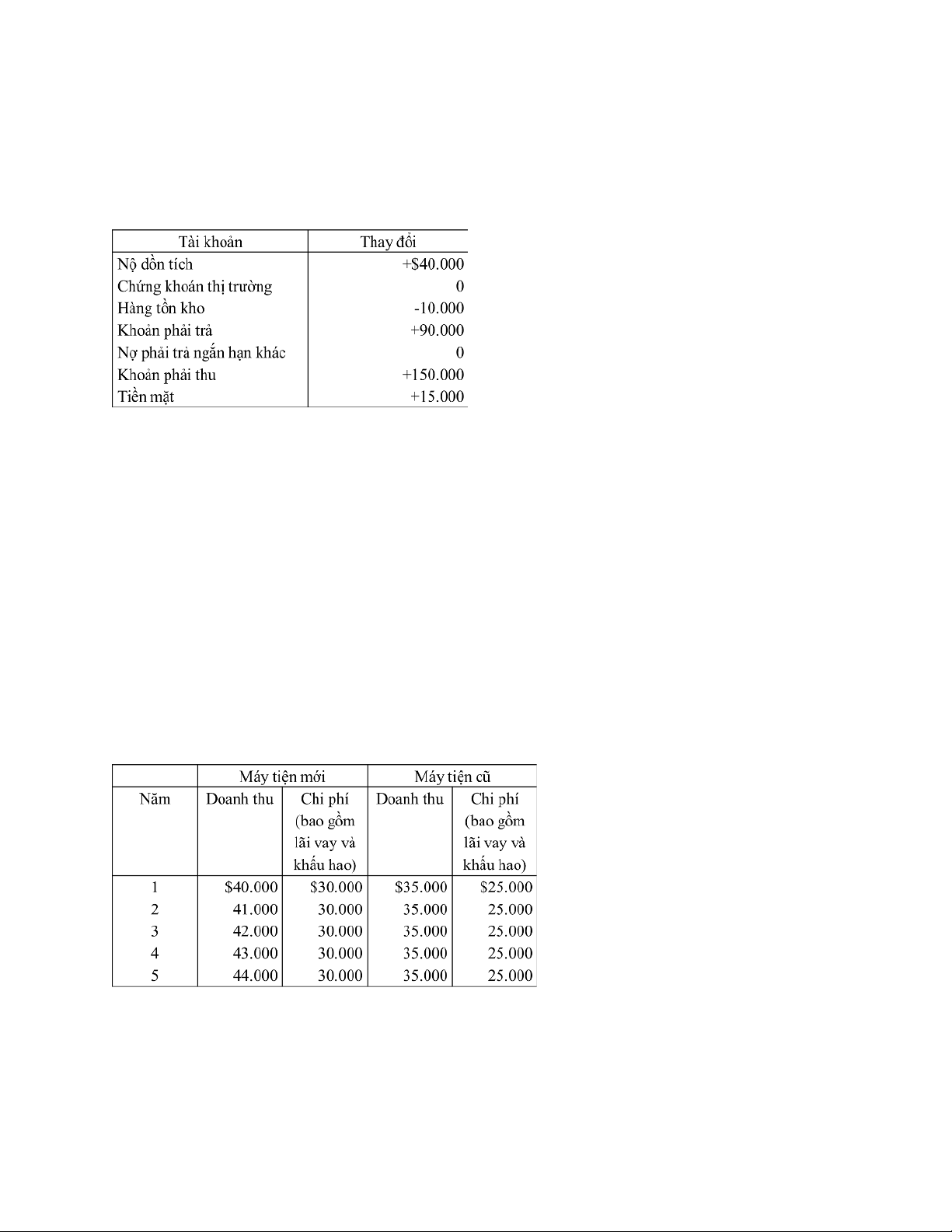 tài sản ngắn hạn $920.000 và tổng nợ là $640.000. Mức thay đổi trong vốn lưu động thuần được ước tính như sau: