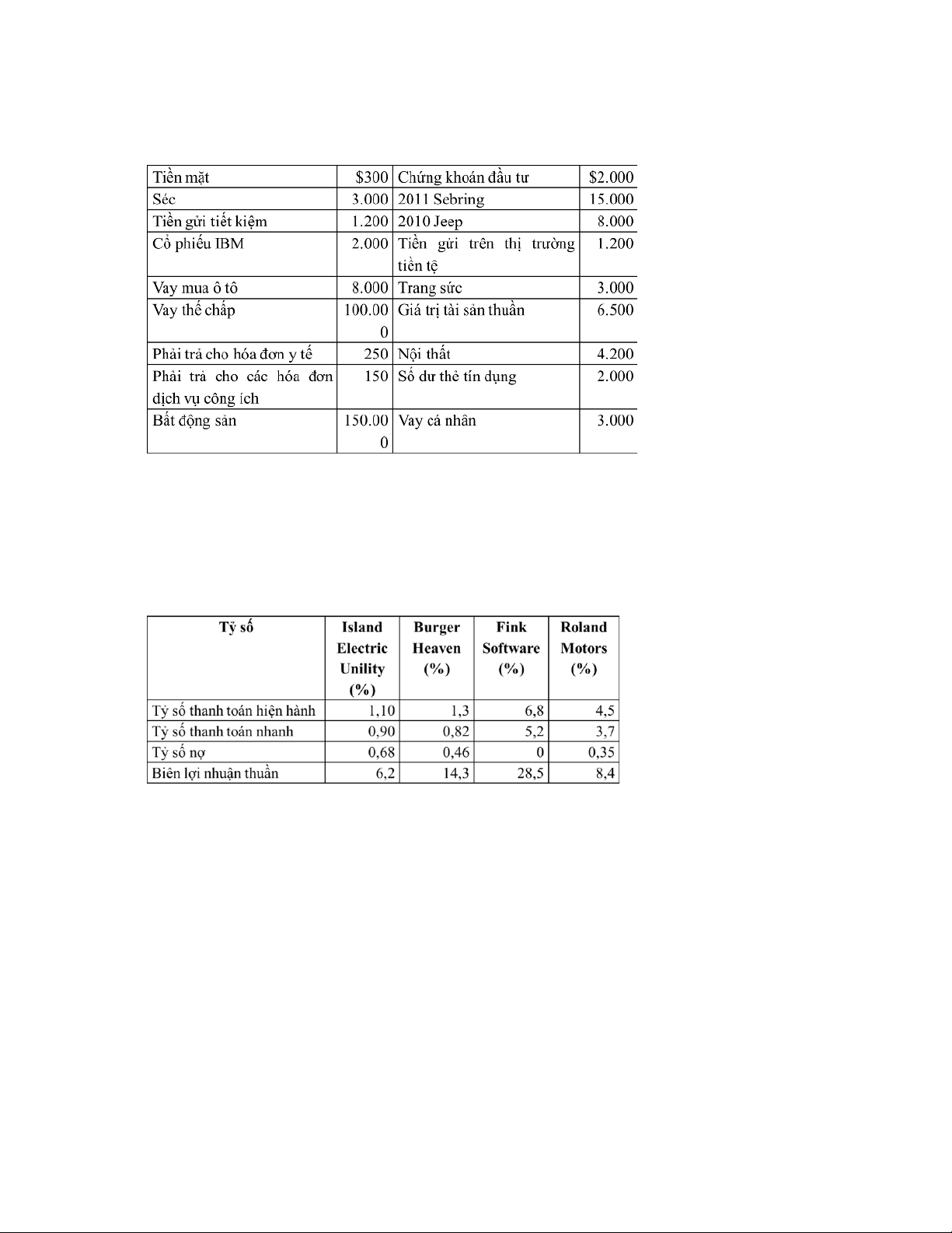 Giả sử cậu anh ấy là một nhà đầu tư khôn ngoan. Robert bị bối rối với những tỷ số này. Hãy giúp anh ấy.