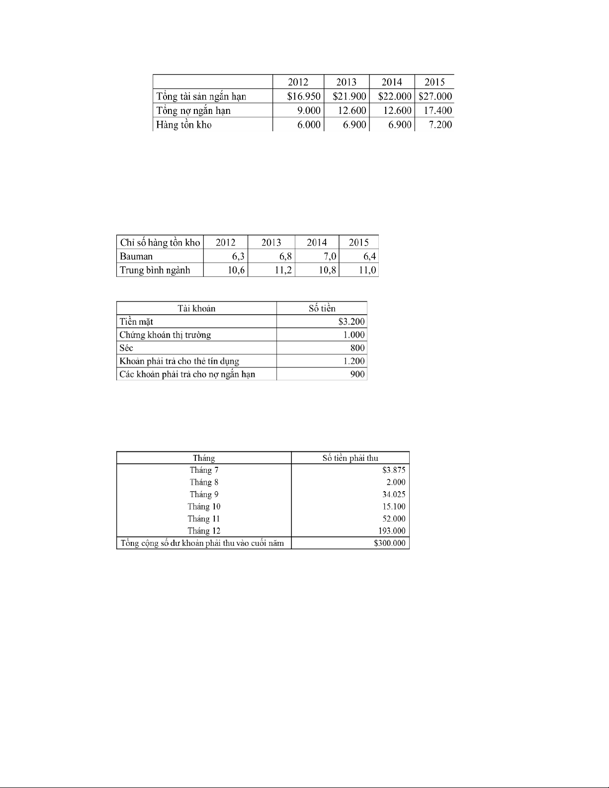 5. Công ty Bauman có số liệu về tổng tài sản ngắn hạn, tổng nguồn vốn ngắn hạn và hàng tồn