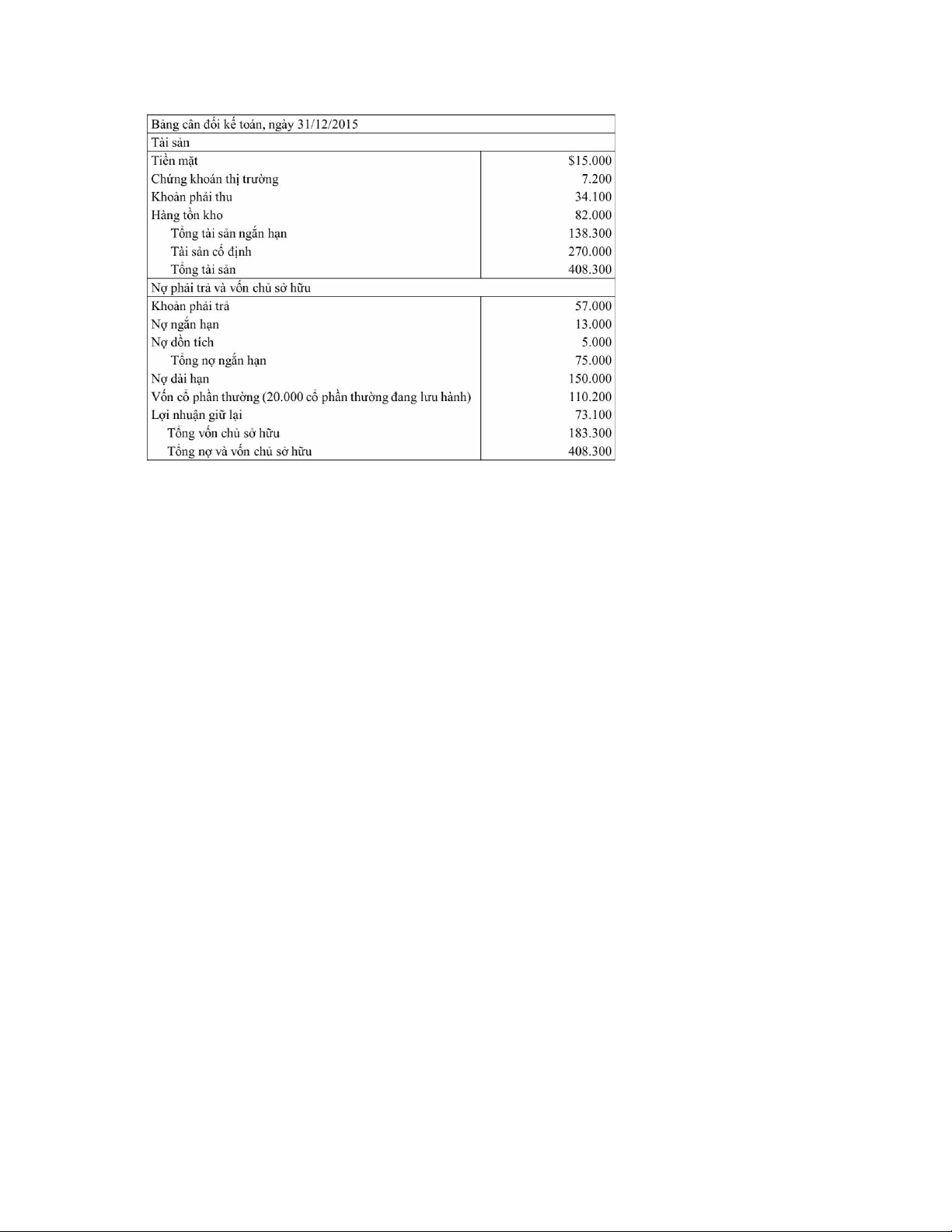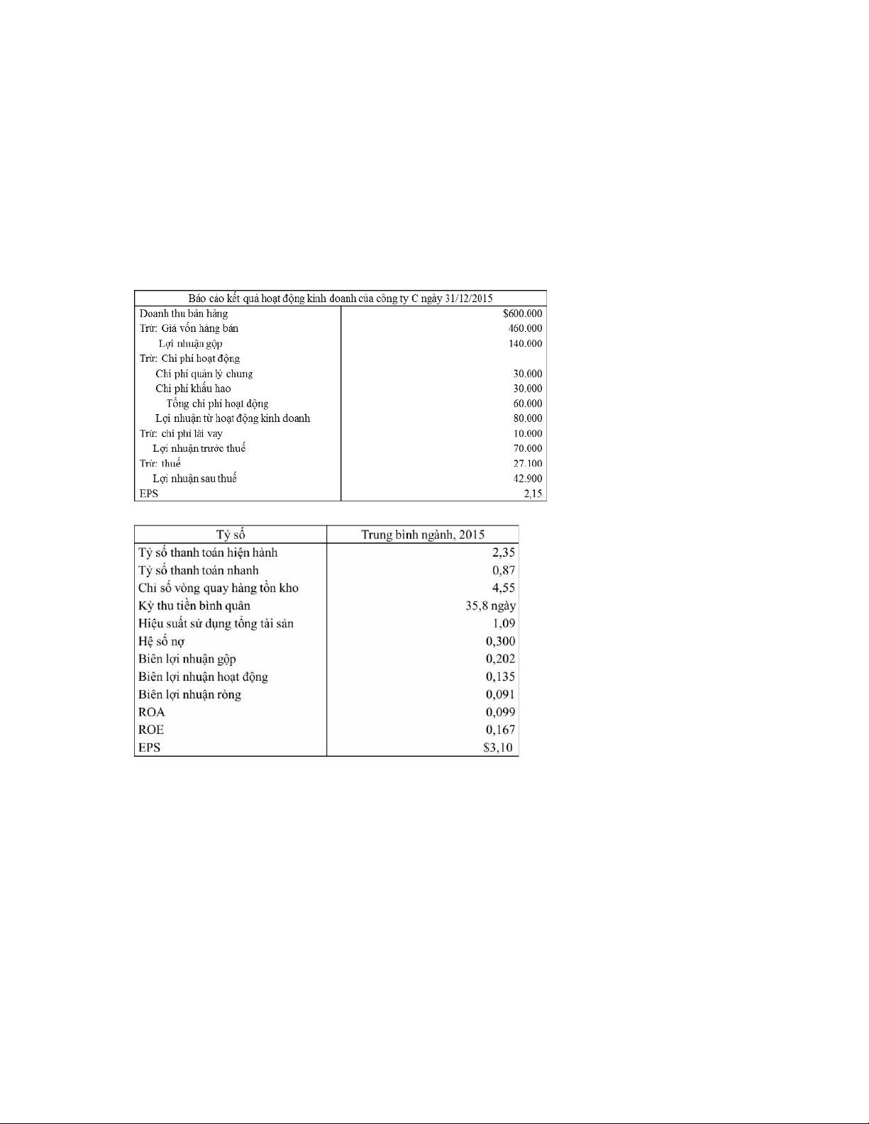 11. Sử dụng các báo cáo tài chính của công ty C vào ngày 31/12/2015 kết hợp với số liệu trung