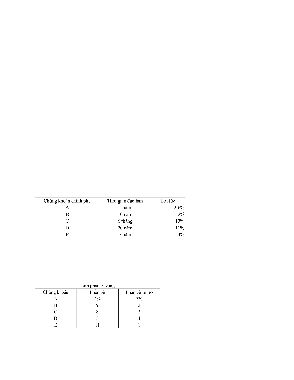4. Cổ phiếu của công ty J&M có hệ số bê ta là 1,2. Lãi suất phi rủi ro là 6% và lãi suất thị trường là 11%.