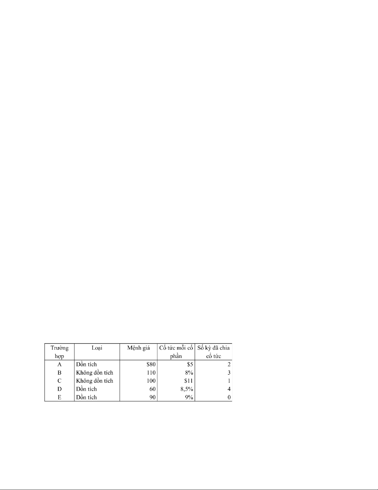 d. Tính toán chi phí sử dụng vốn bình quân, sử dụng tỷ lệ về cấu trúc vốn trong bảng sau: CHƯƠNG 7