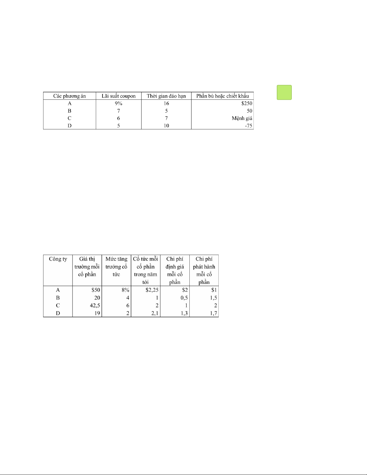 suất coupon 8%. Để phát hành trái phiếu này, mức chiết khấu mỗi cổ phiếu là $30 và chi phí phát