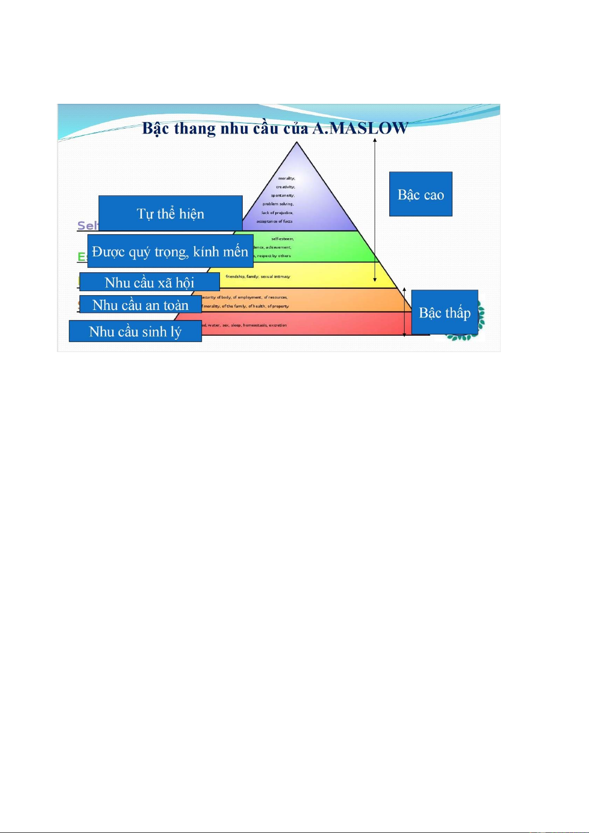 Câu 1: Phân tích tháp thang nhu cầu A. MASLOW.