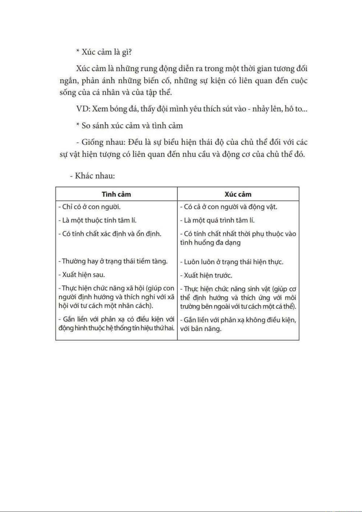 Câu 10: So sánh sự giống nhau, khác nhau và mối quan hệ giữa xúc cảm và tình cảm. * Tình cảm là gì ?