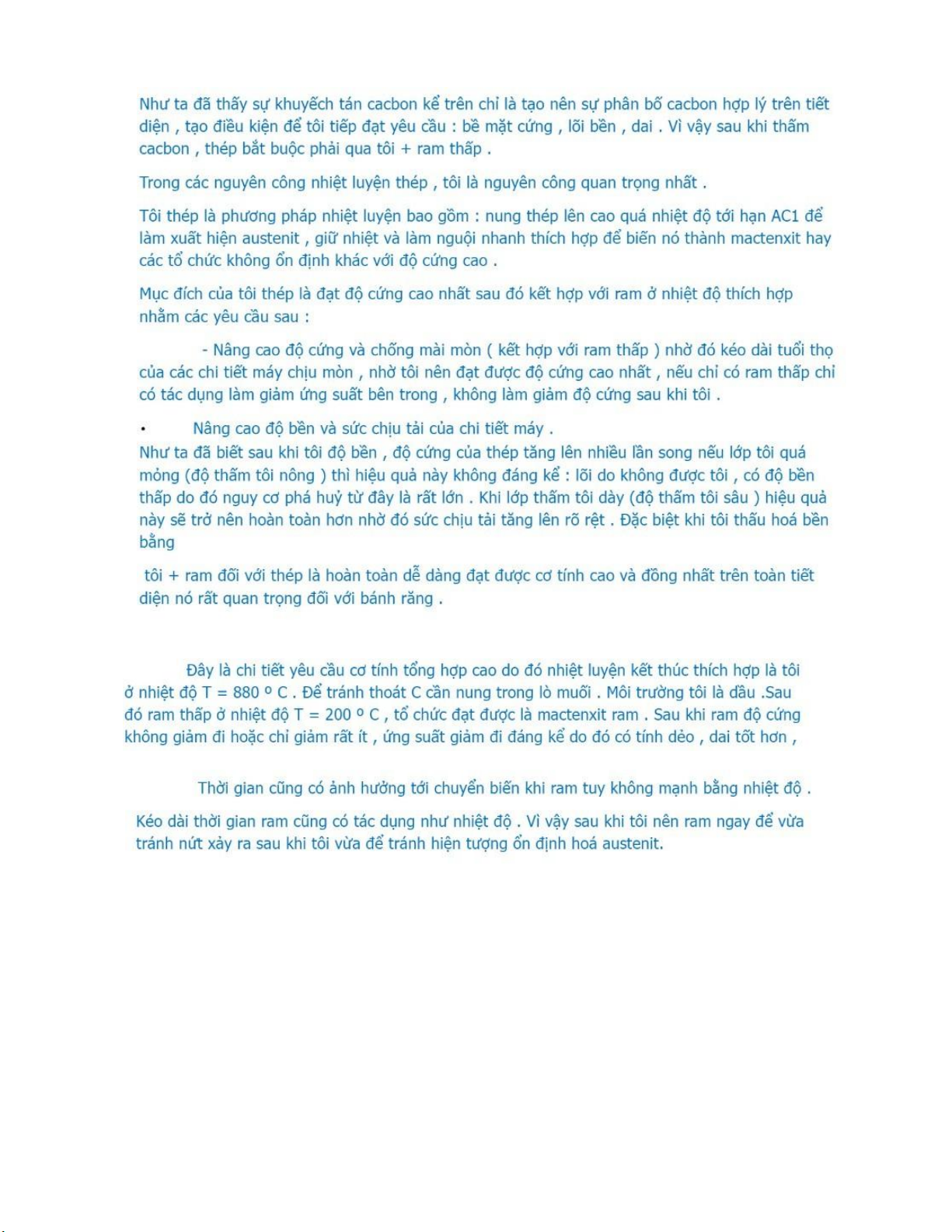 (200000 psi) và độ dẻo nhỏ nhất là 43%, chi tiết được tôi trong dầu rồi sau đó ram. Thiết