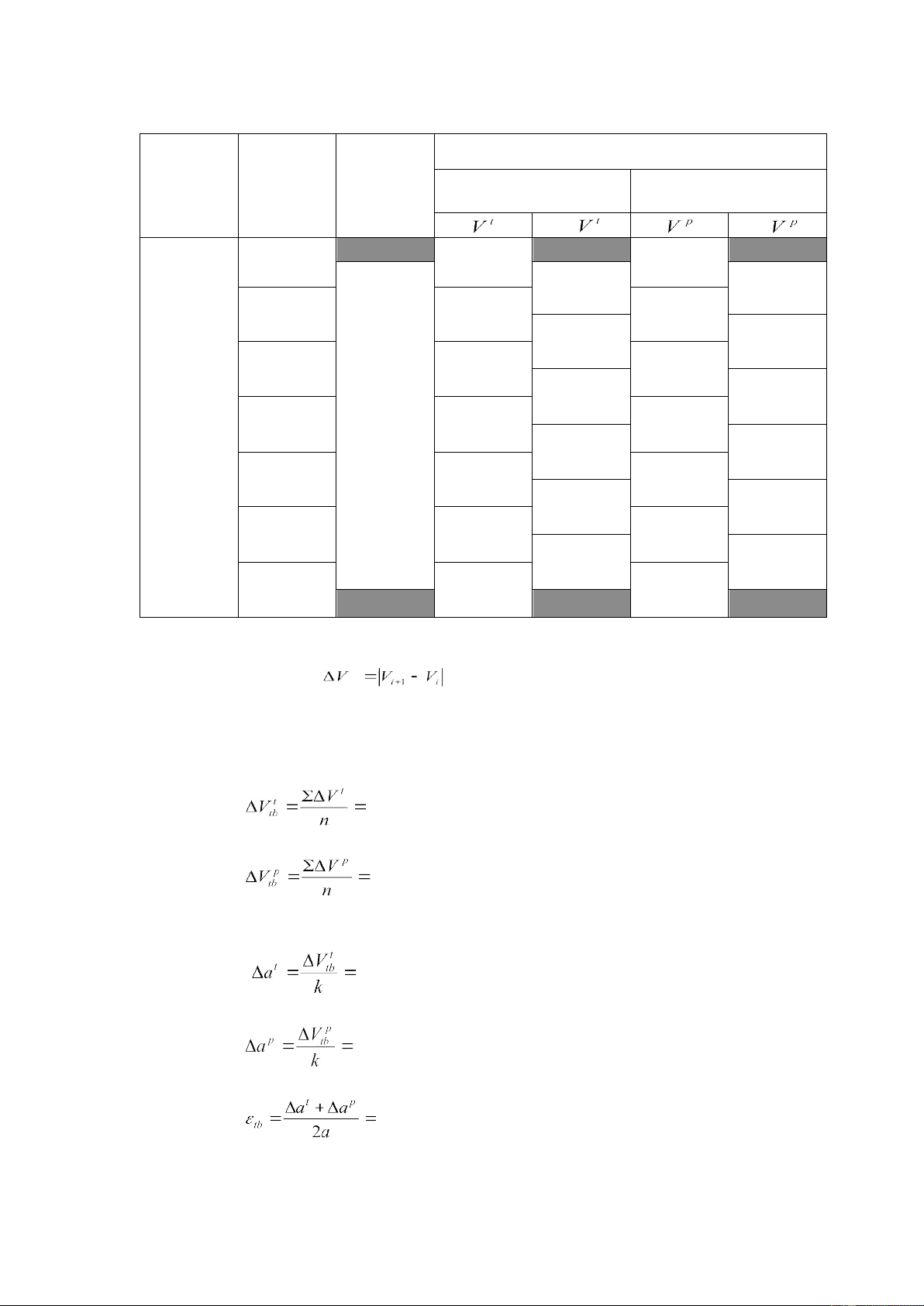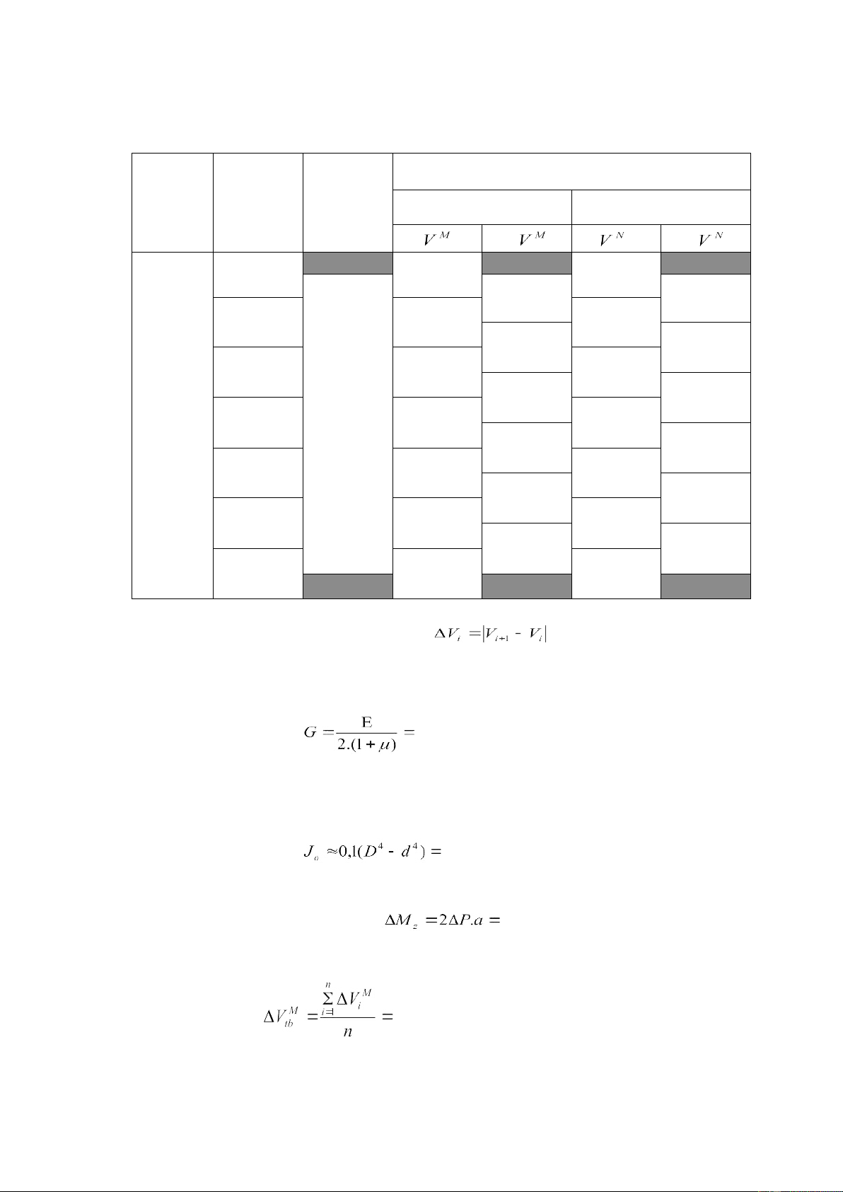 Số đọc trên ten xô mét đòn Lần đặt P ΔP tải thứ (kg) (kg) Bên trên Bên dưới V Δ v v Δ v 0 1 2 2 4 3 6 2 4 4 5 2 6 0