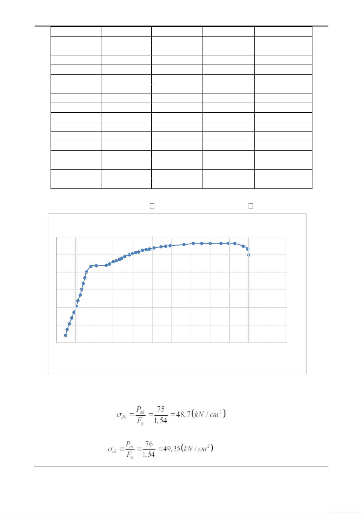 2. Các số liệu thí nghiệm: Chỉ số Đường Cấp tải đồng trọng hồ kính mẫu đo biến khi phá (kN) l (mm) dạng hoại dài 25 11,67 1,67 0,059 18,519 30 11,7 1,7 0,06 22,222 35 11,72 1,72 0,061 25,926 40 11,78 1,78 0,063 29,630 45 11,84 1,84 0,065 33,333 50 11,89 1,89 0,067 37,037 55 11,93 1,93 0,069 40,741 57,5 12,02 2,02 0,072 42,593 60 12,09 2,09 0,074 44,444 62,5 12,14 2,14 0,076 46,296 65 12,19 2,19 0,078 48,148 67,5 12,23 2,23 0,079 50,000 70 12,29 2,29 0,081 51,852 72,5 12,36 2,36 0,084 53,704 75 12,43 2,43 0,086 55,556 77,5 12,5 2,5 0,089 57,407 80 12,6 2,6 0,093 59,259