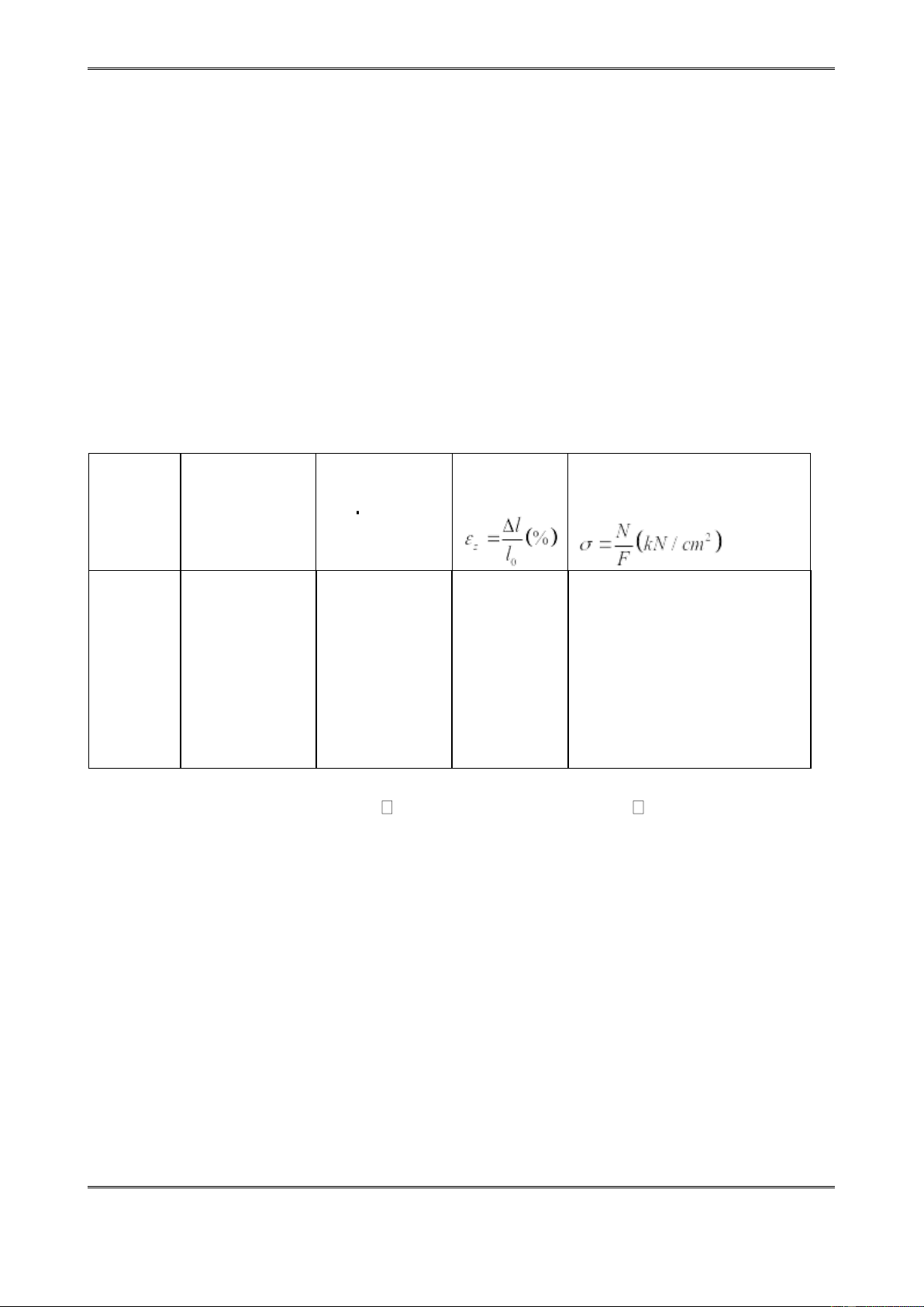 4. Số liệu và kết quả thí nghiệm: K thước mẫu (mm) Cường Số í Diện Lực độ chịu TT c tích kéo mẫ h chịu kéo giới giới hạn u Dà Rộn kéo F hạn Cao R i g (cm2) k Ngh (kN/cm2) L0 b h (kN) 1 110 30 6 1,8 20,05 11,139 2 110 30 6 1,8 7,5 9,375 3 110 30 6 1,8 12 6,667 R tb k = 9,06