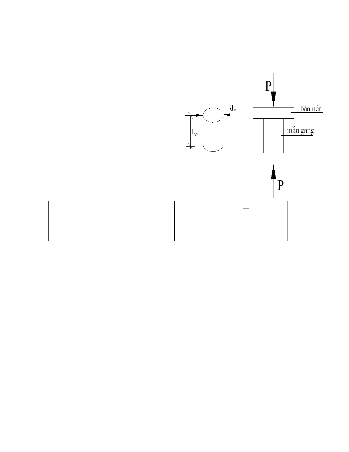 1. Kích thước mẫu - Mẫu hình trụ - Chiều dài: l0 =. mm - Đường kính: do = mm