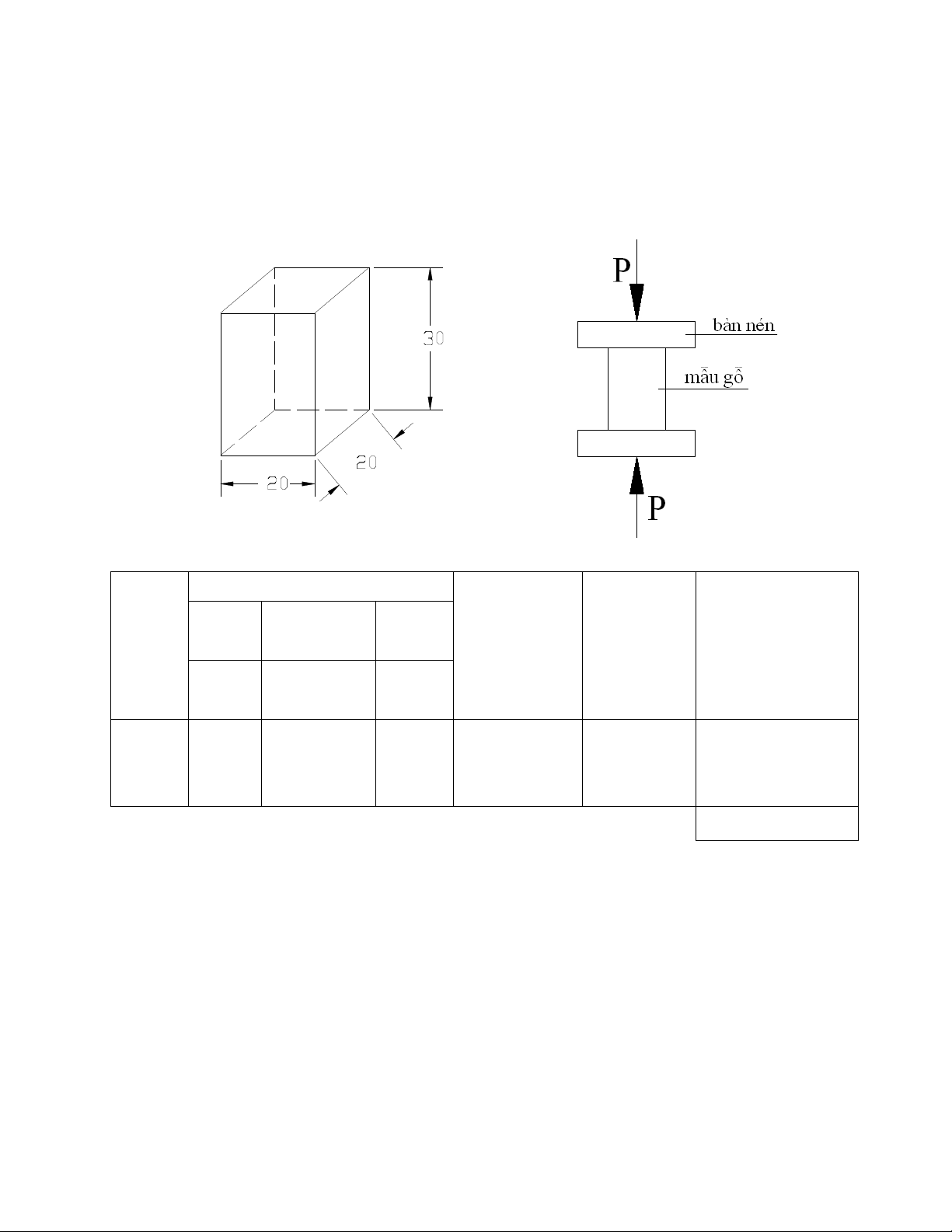 Xác định giới hạn cường độ chịu uốn của mẫu gỗ ở độ ẩm tự nhiên. 2. Mẫu thí nghiệm: - Gỗ có tiết diện. , dài (mm)