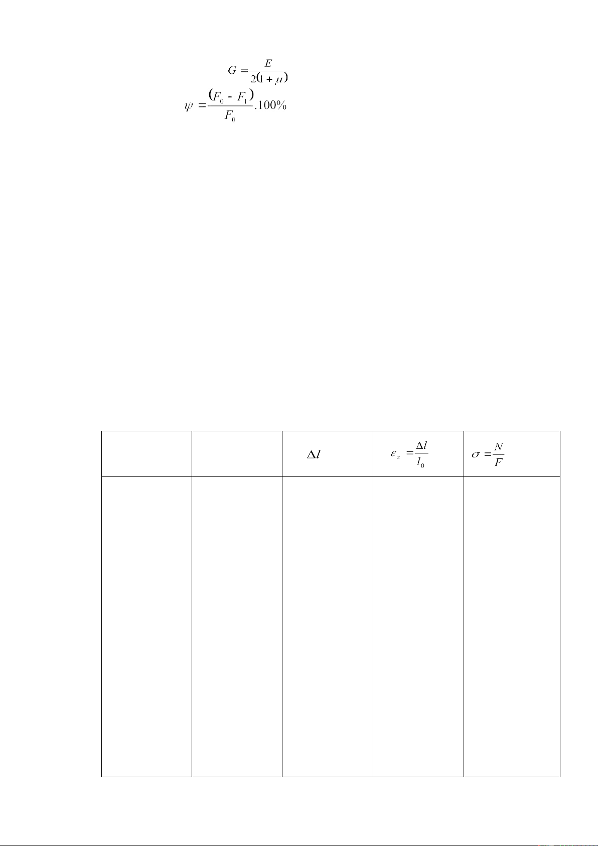 - Mô đun đàn hồi trượt: - Độ thắt tỉ đối: