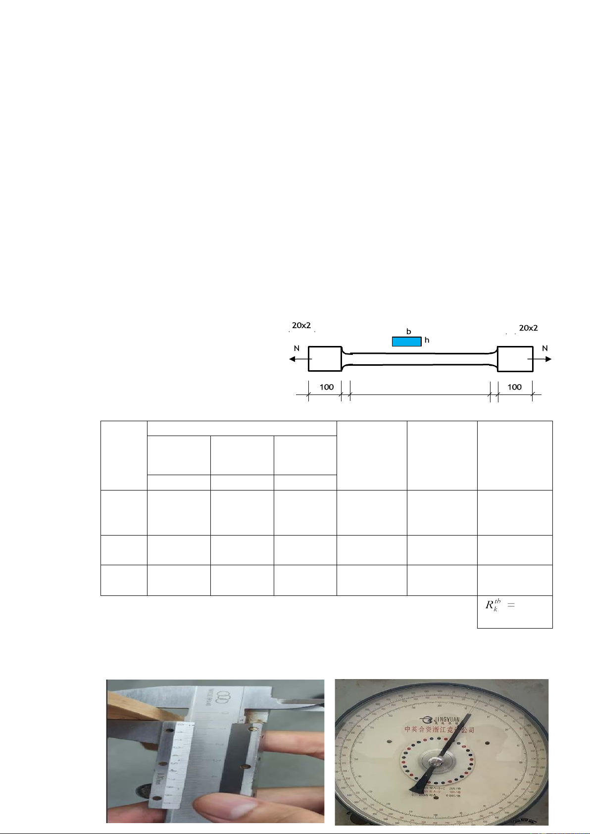 4. Số liệu và kết quả thí nghiệm: Kích thước mẫu (mm) Cường Diện Lực độ Số tích kéo TT Dài Rộng Cao chịu kéo chịu giới mẫu kéo hạn giới hạn F (cm2) Ngh (kG) Rk (kG/cm2) L0 b h 1 28,8 8 2,304 2 29 7,8 2,262 3 10