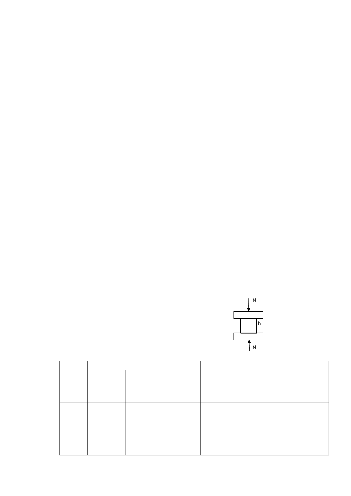 4. Số liệu và kết quả thí nghiệm: Kích thước mẫu (mm) Cường Diện Lực độ Số tích nén TT Dài Rộng Cao chịu nén chịu giới mẫu nén hạn giới hạn F (cm2) Ngh (kG) Rn (kG/cm2) a b h 1 2 3 11