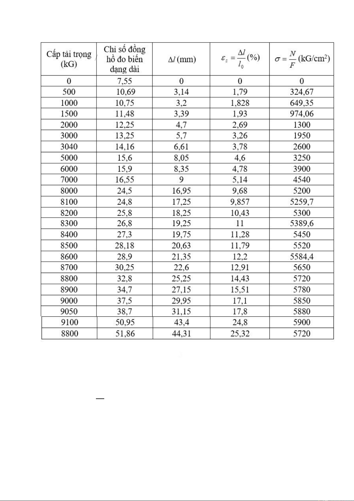 đường thẳng, giai đoạn này gọi là giai đoạn đàn hồi, giới hạn đàn hồi là 4575.2 (kG/cm2).