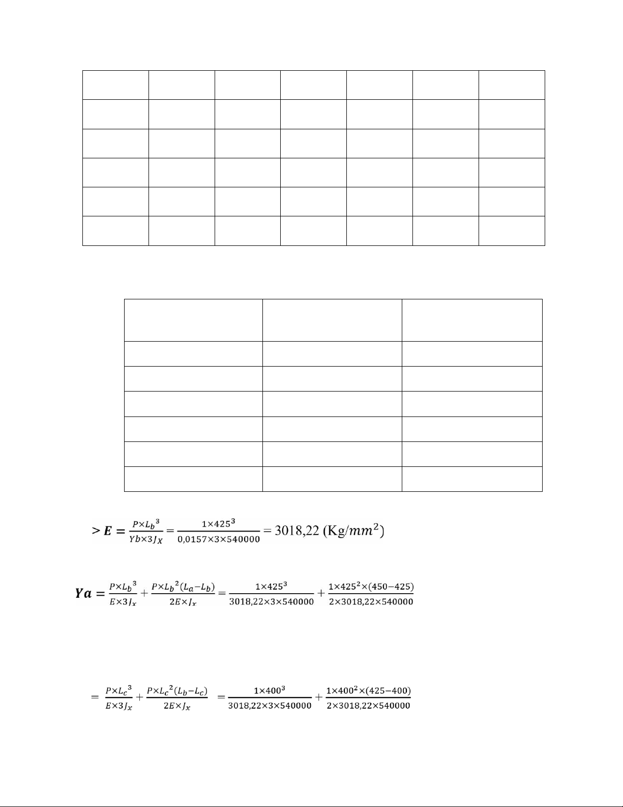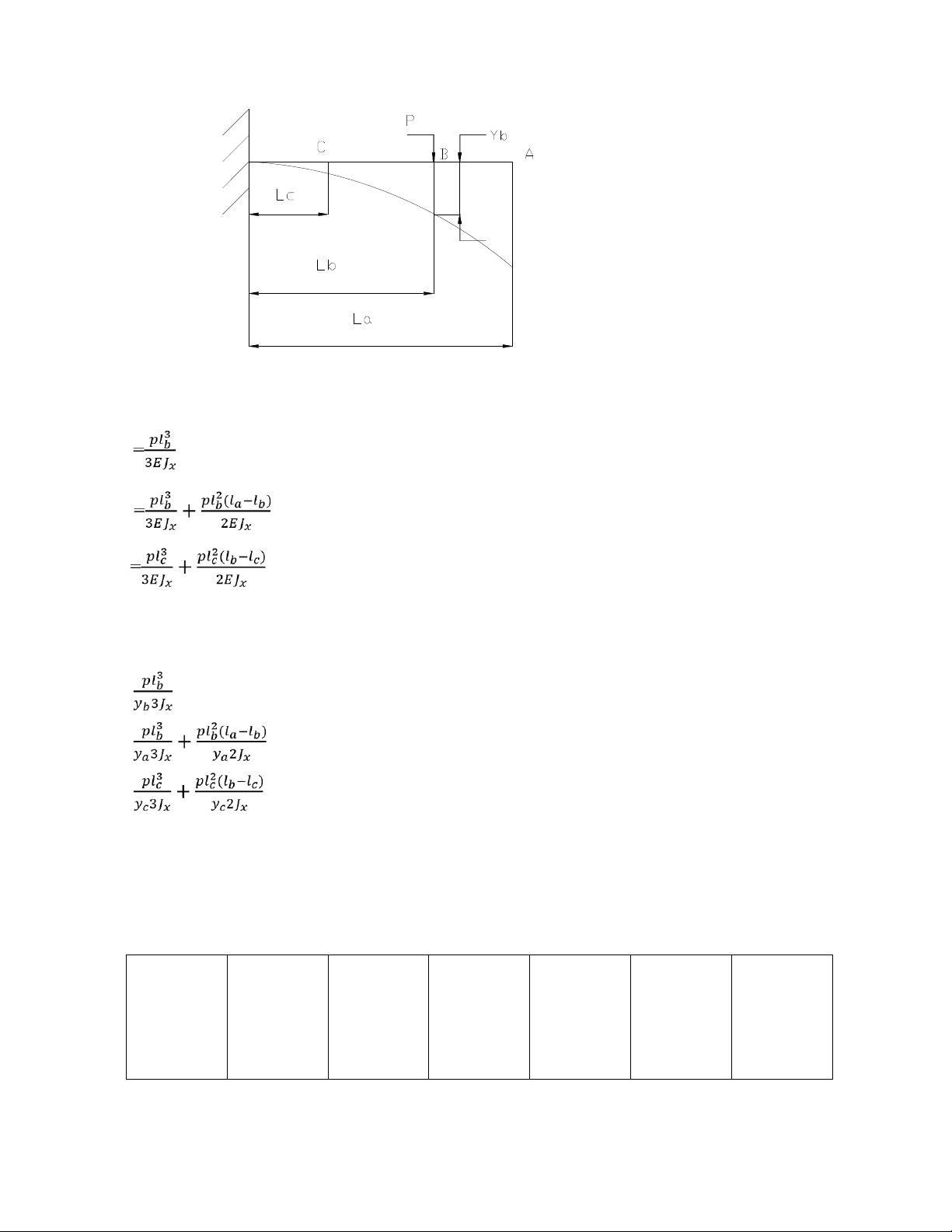 đồng hồ so đặt tại A và có bảng giá trị như sau: Lần thứ i Tải trọng P1(kg) Trị số chuyển vị Yai(mm) 1 1 2 2 3 3 4 4 5 5 6 6 Khi P=1: Yb- Ya = 0.0158 (mm) Yc 18