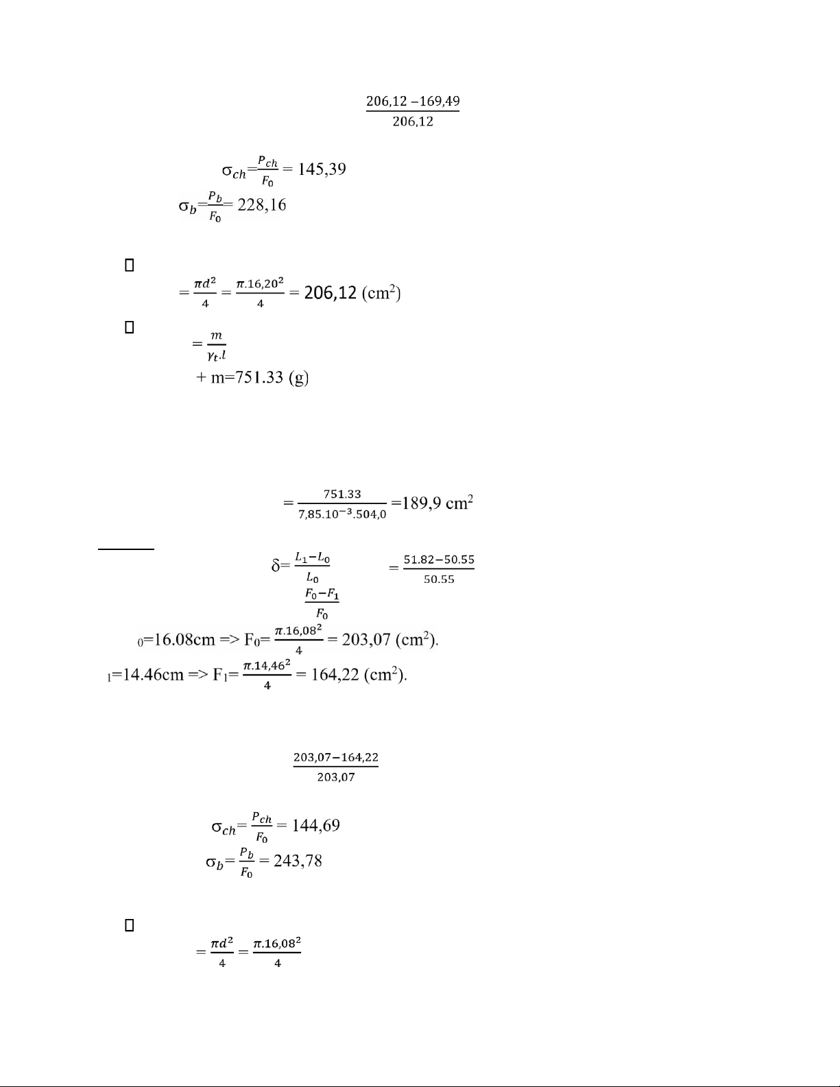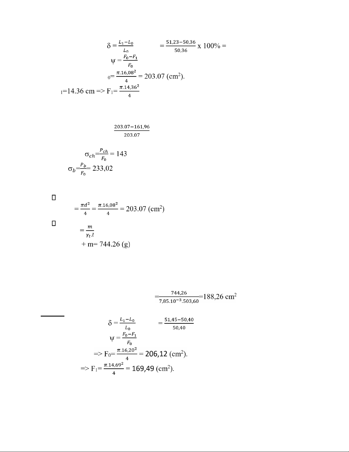 Qua thí nghiệm ta xác định được: Pch= 29382.29 N, Pb= 49504.91 (N) Giới hạn chảy: (kG/cm2) Giới hạn bền: (kG/cm2)