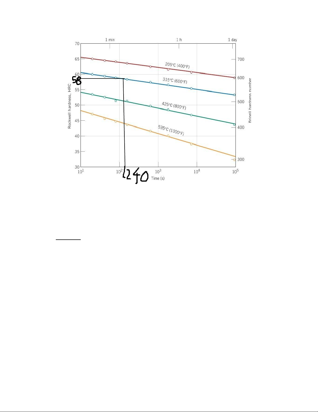 9. Thép 1080 được tôi bằng nước, xác định thời gian ram cần thiết để đạt được độ cứng là 58 HRC
