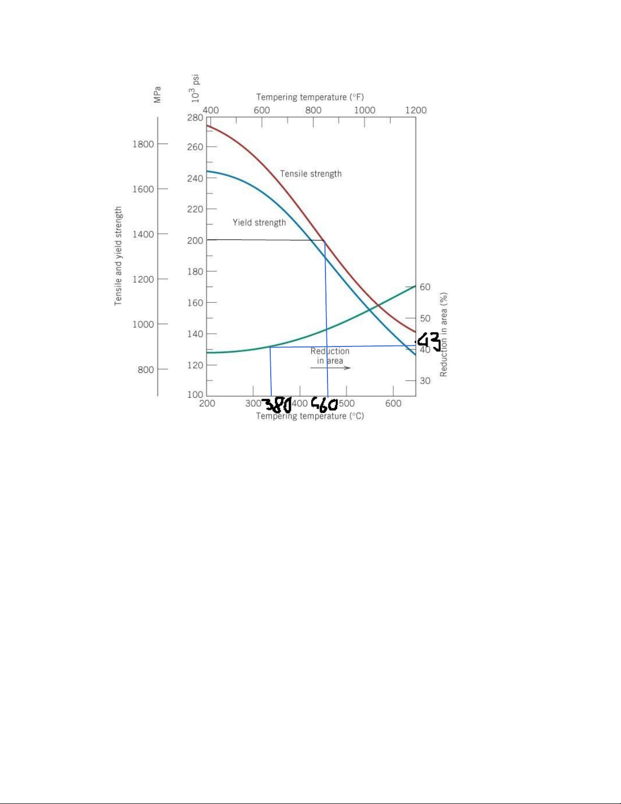 Trả lời : Để thu được độ bền > 200000 psi nđo ram như hình vẽ phải < 460 o C, còn để