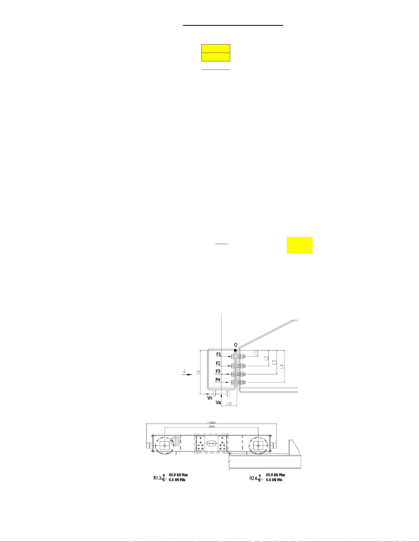 Số hàng bulong mỗi bên dầm biên: n'= 3 Xét momen tại O: Mo phải =F1.L1 + F2.L2 = 18,032.0 (kNmm)