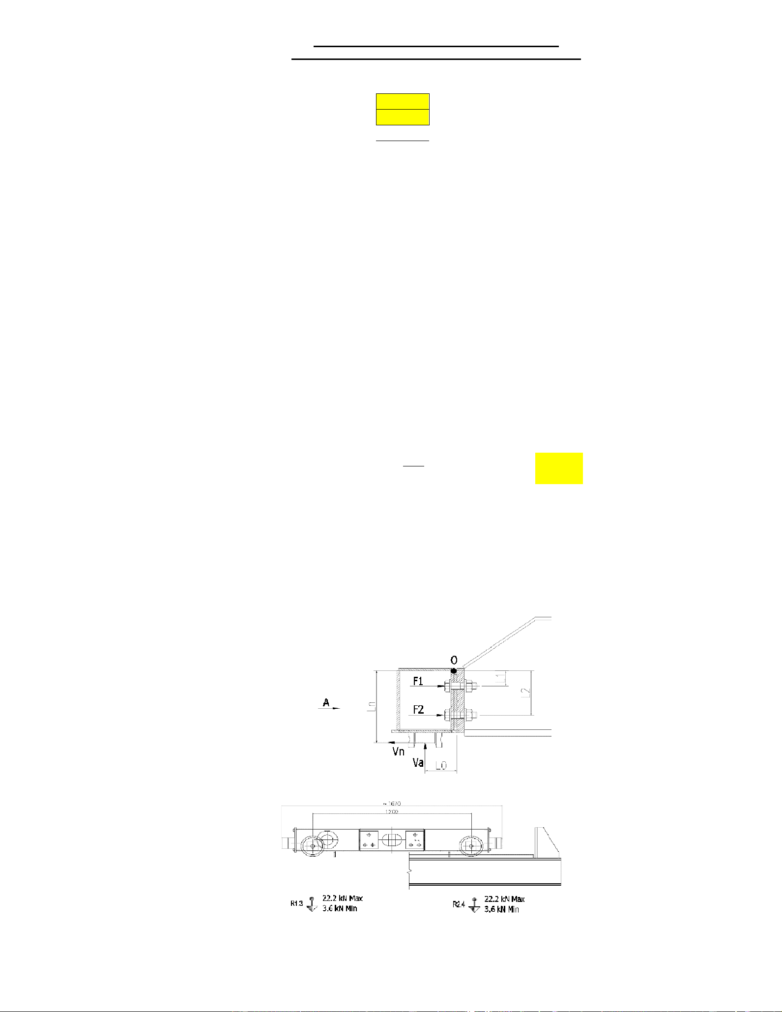 Trong đó: áp lực bánh xe Rbx = 22,200.0 (N) Điều kiện an toàn: α Vc [N]vb = 58.80 >= = 22.20 ĐẠT n Trong đó: - Hệ số an toàn: α = 3.00 -Số bulong mỗi bên: n = 6.00 -Lực cắt đầu dầm: Vc= 44.40 (kN)