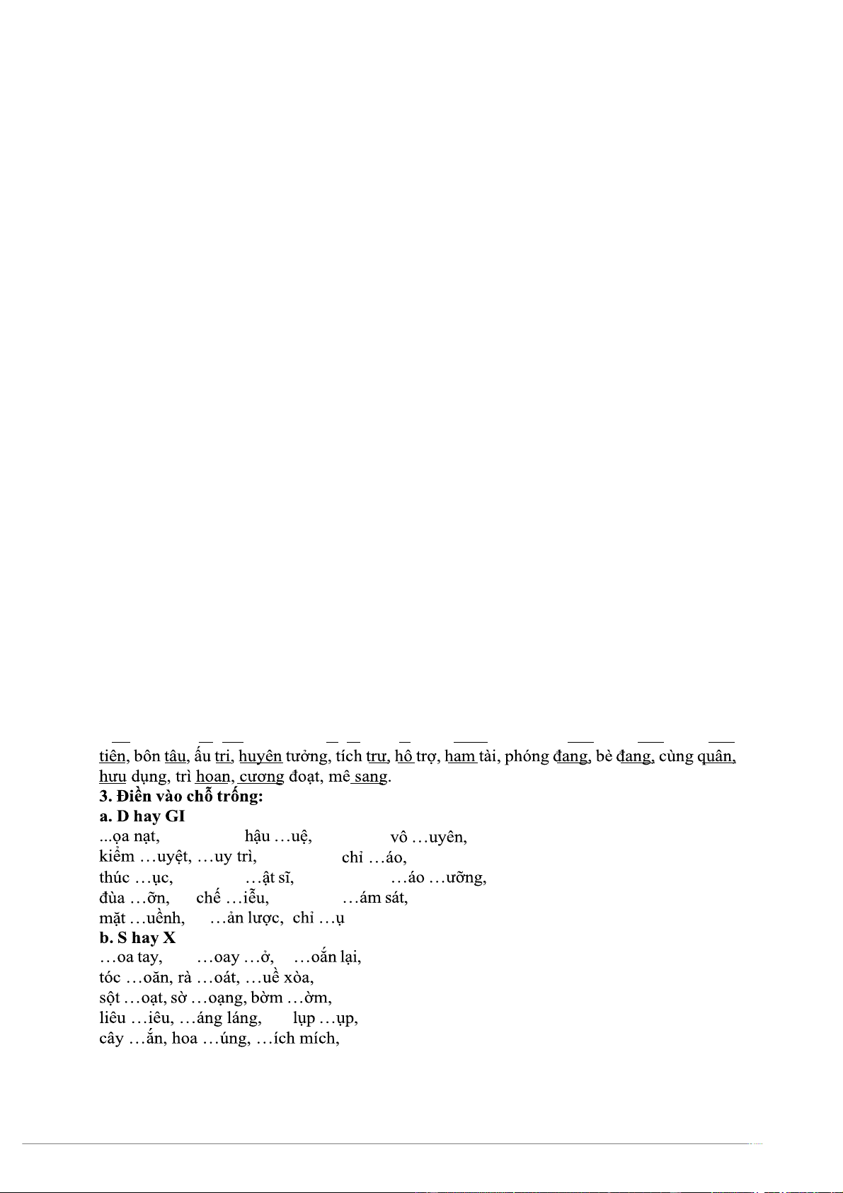 …uýt …oát, …ấm …ét, …oán đoạt c. Tr hay Ch