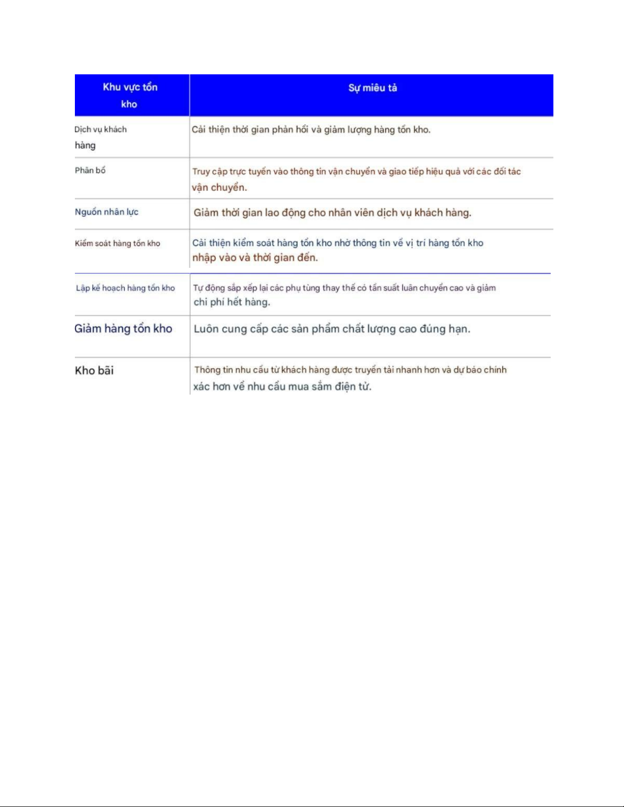 như giảm mức tồn kho, cải thiện dịch vụ khách hàng và ít vấn đề liên quan đến đơn hàng hơn.