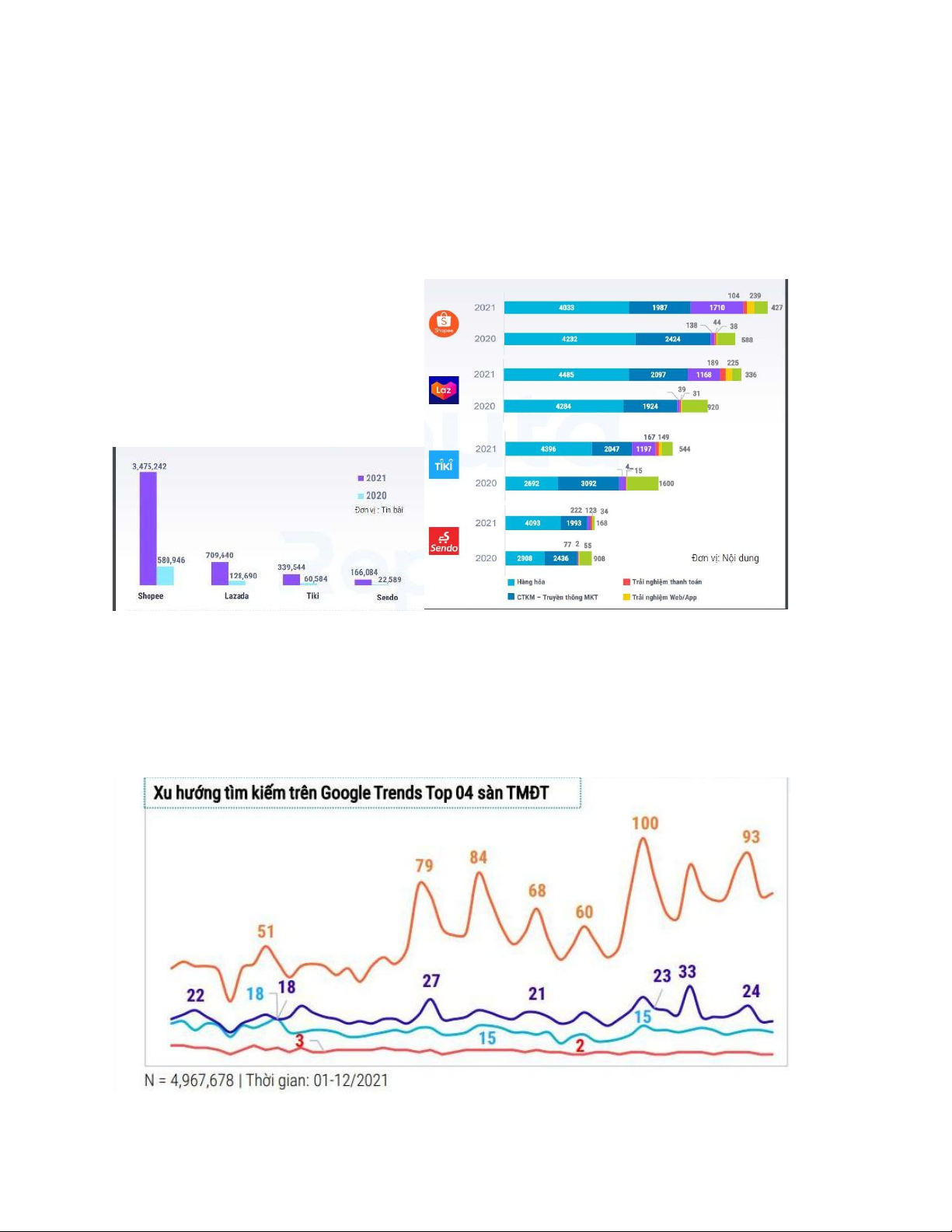 Tiki tăng gấp 6 lần; riêng Sendo có lượt thảo luận tăng gấp 7 lần so với năm 2020