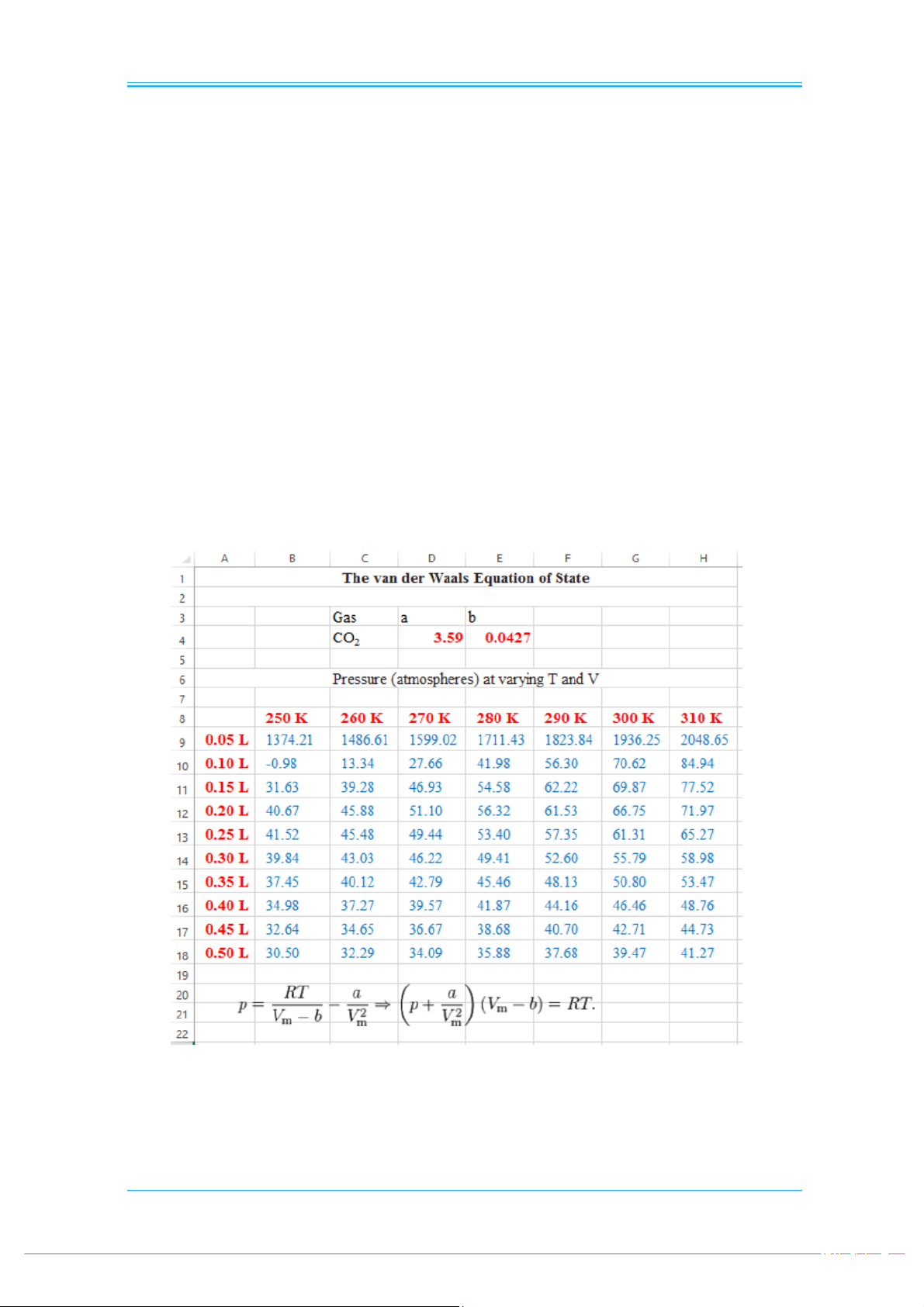 Exercise 6: Vander Waals Equation of state – Phương trình trạng thái