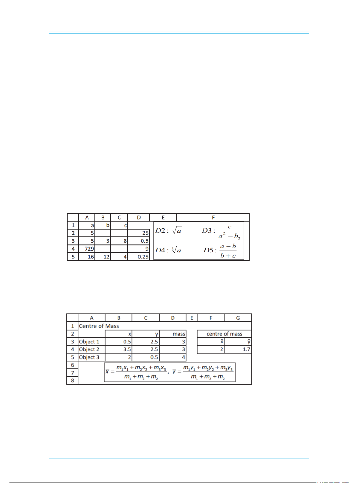 of mass of these objects. What formulas are in F4 and G4? Figure 1.2