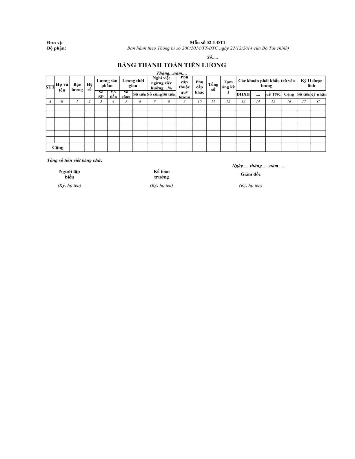 - Bảng thanh toán tiền lương