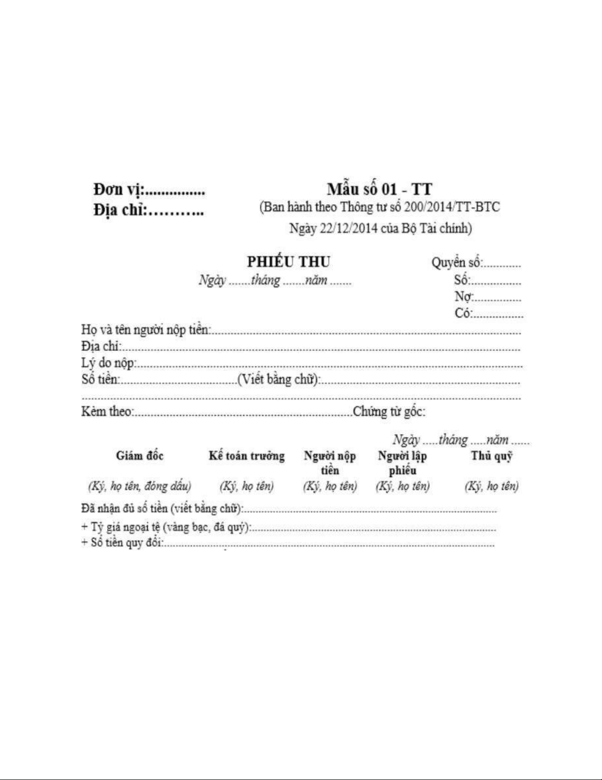 thể bằng tiền mặt, tiền gửi ngân hàng, séc,…