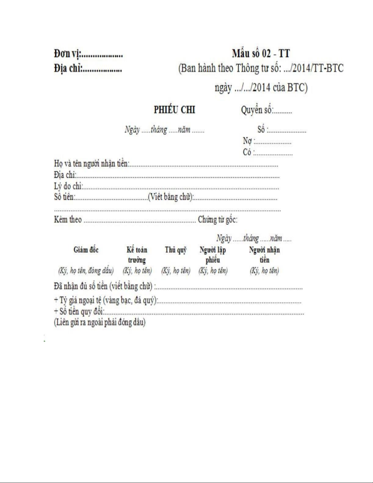 - Chi phí bằng tiền khác * Chứng từ sử dụng
