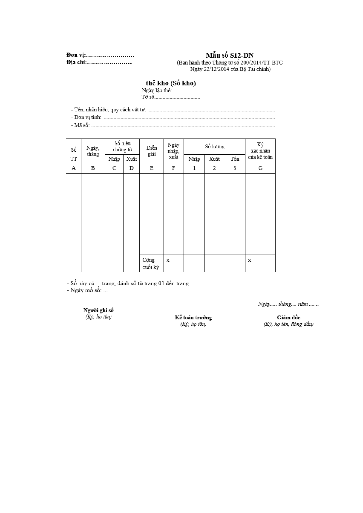 • Do kế toán mở và mở theo kho do mình phụ trách, tương ứng với thẻ kho