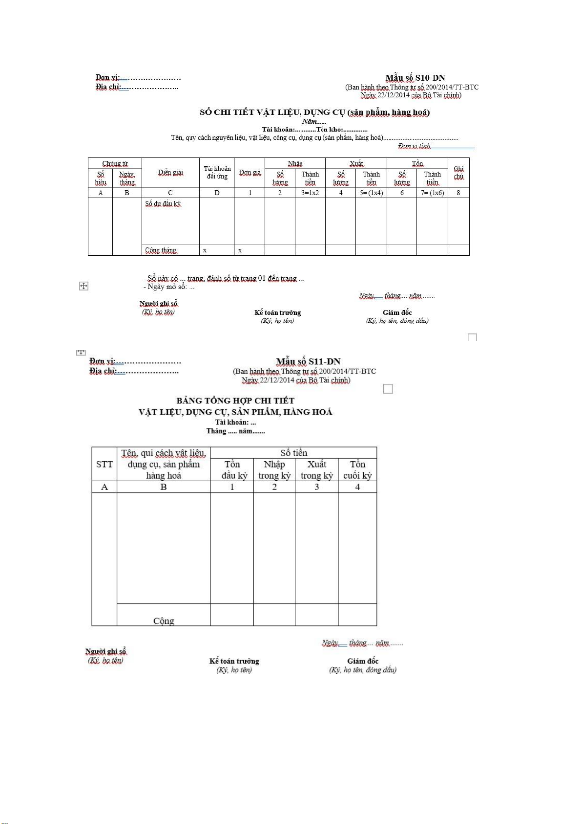 • Cơ sở để ghi là các chứng từ nhập xuất vật tư. Ghi theo cả chỉ tiêu số lượng và giá trị