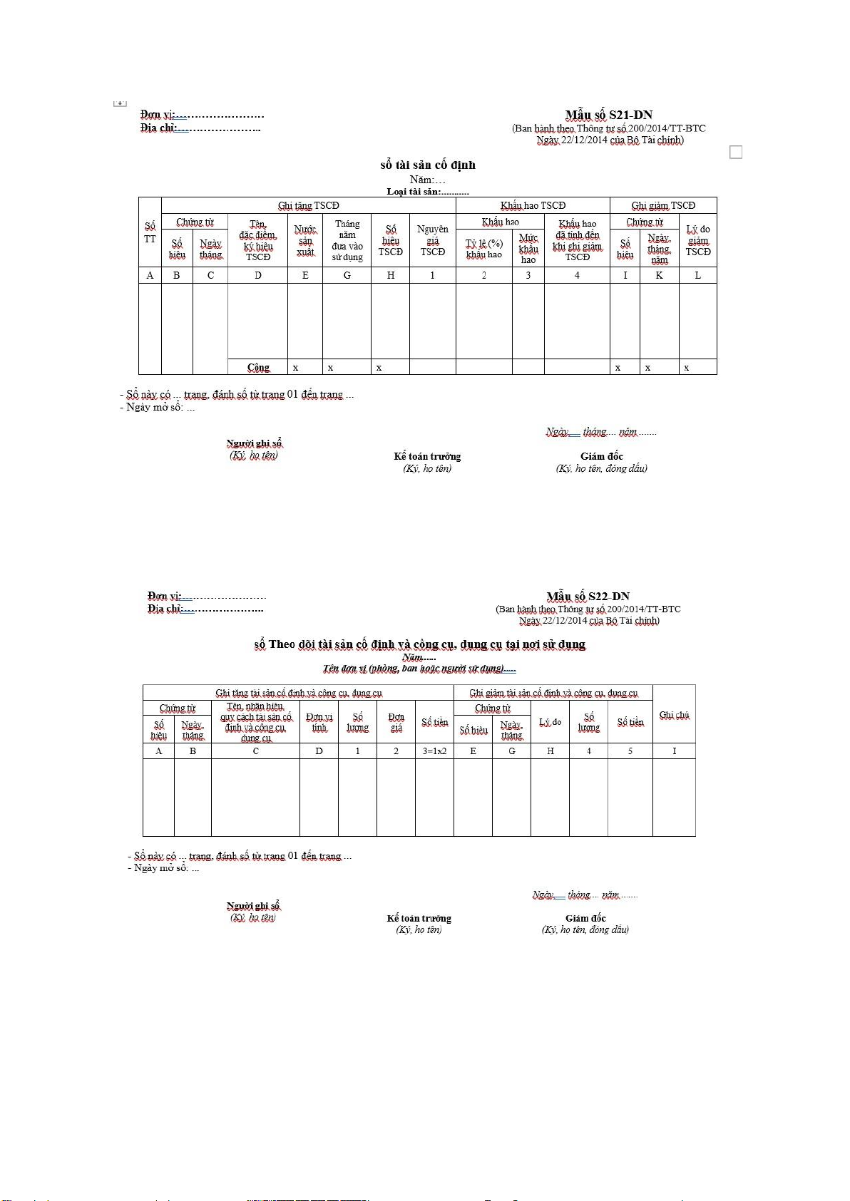 o Mỗi đơn vị / bộ phận thuộc DN phải mở 1 sổ để theo dõi TSCD. Căn cứ để ghi sổ là