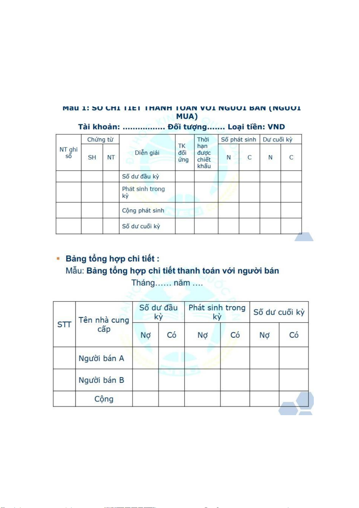 o Mở đủ sổ kế toán chi tiết thanh toán với người bán để theo dõi từng người bán