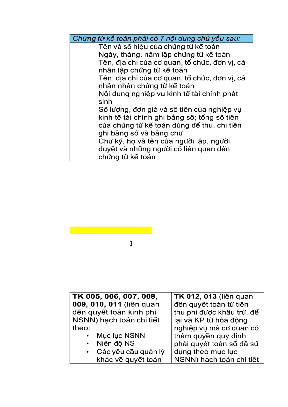 Đáp ứng 7 yêu cầu, tổ chức kế toán phù hợp với mục lục NSNN • Trung thực • Khách quan • Đầy đủ • Kịp thời • Dễ hiểu