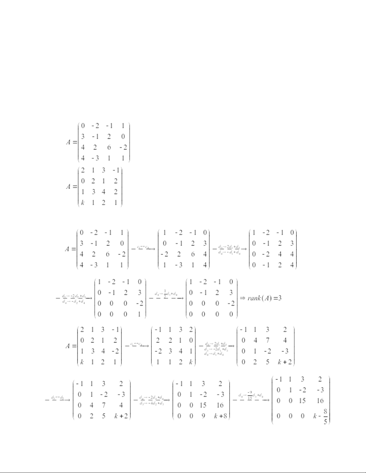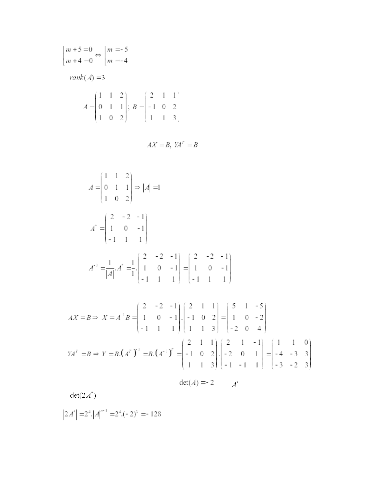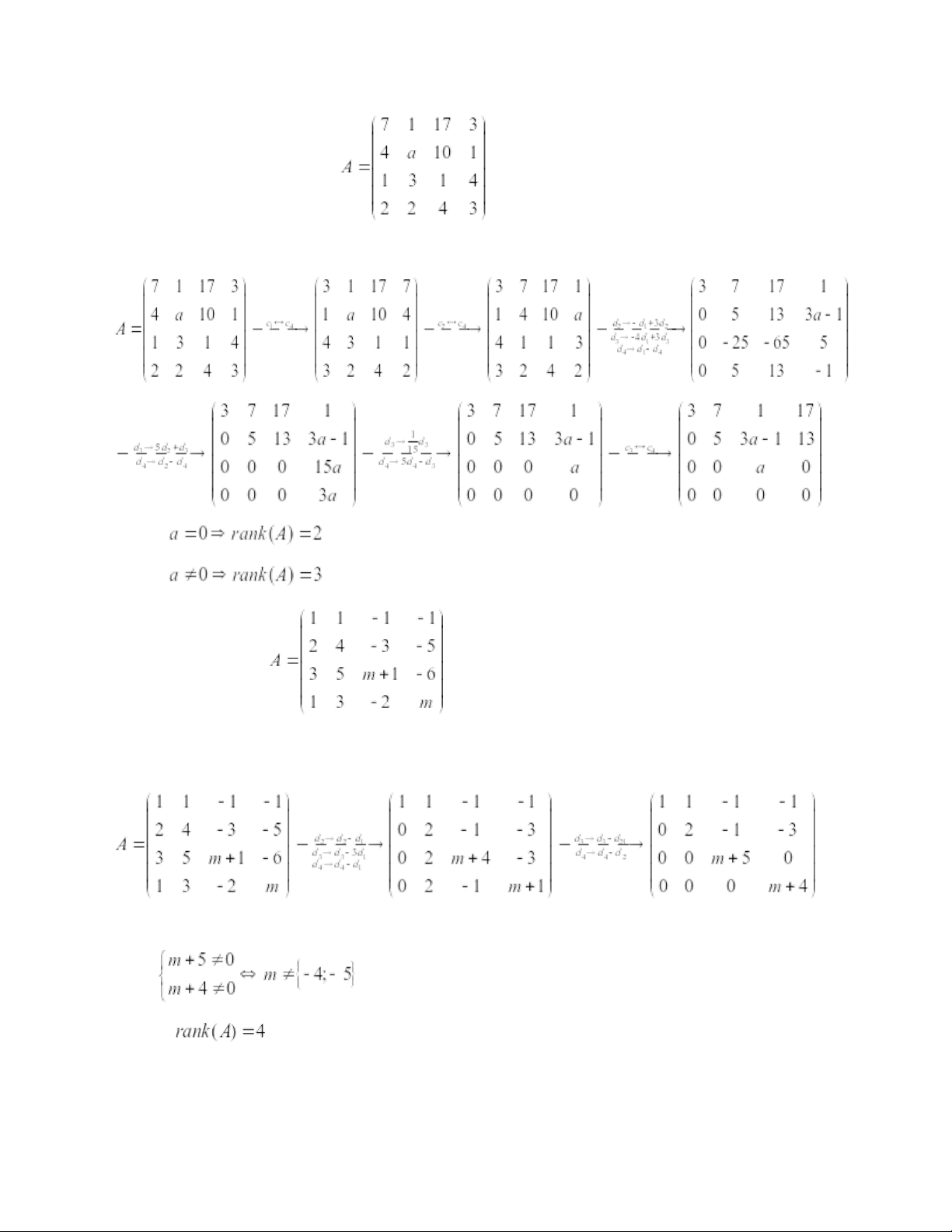 . Biện luận hạng của ma trận A theo tham số thực m. Giải: Biện luận: TH1: Khi đó: TH2: Khi đó: Câu 4: Cho .